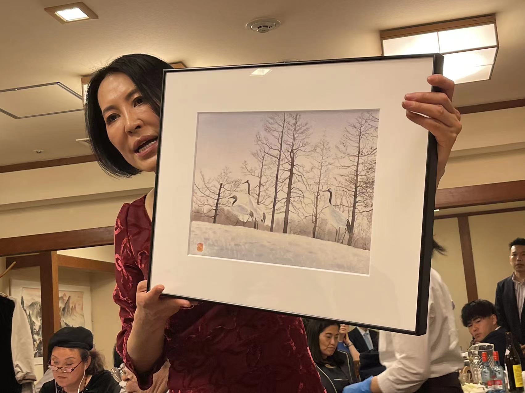 这一天是由在慶應大学任教的多才的吴敏老师为来宾作精彩的扇面书法表演,她那细腻入微,如行云流水般的笔势,让在场的来宾赞不绝口。