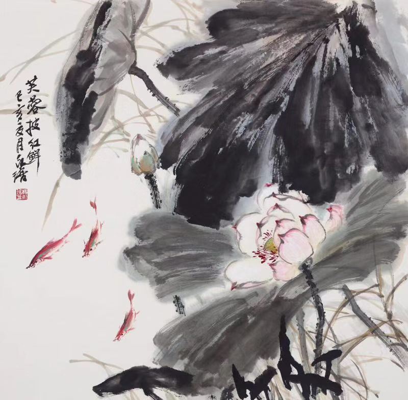 人物画则形神兼备,传递出人与自然美好相融的祈福。而花鸟画章法大气,以线造型,点厾并用,格调高雅。