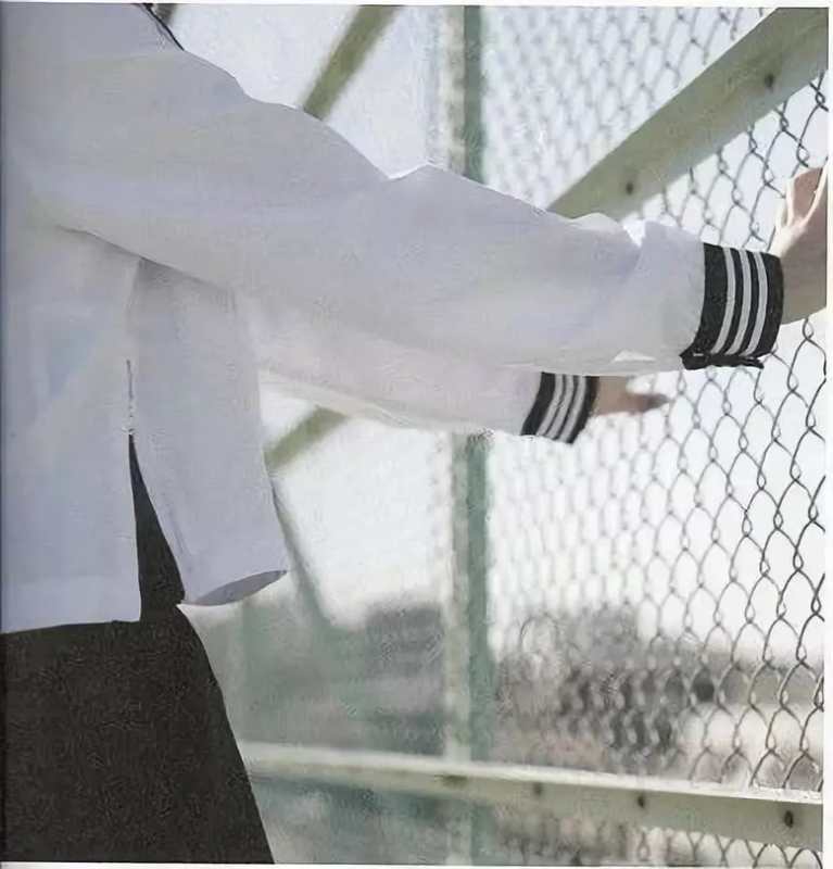 仿佛是东京都知事小池戴的那种工艺口罩。在海蓝上衣外面还斜佩着一条白色的丝巾,真有点五四青年的感觉。