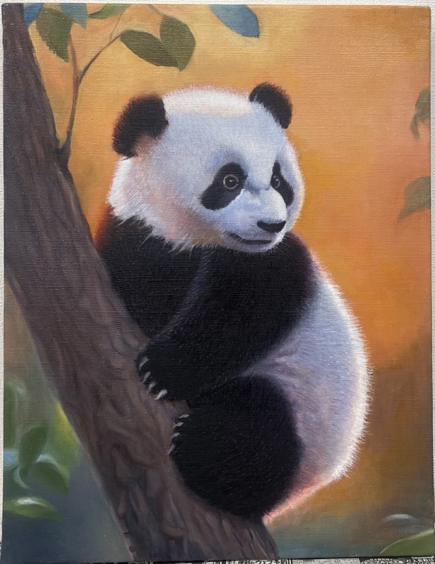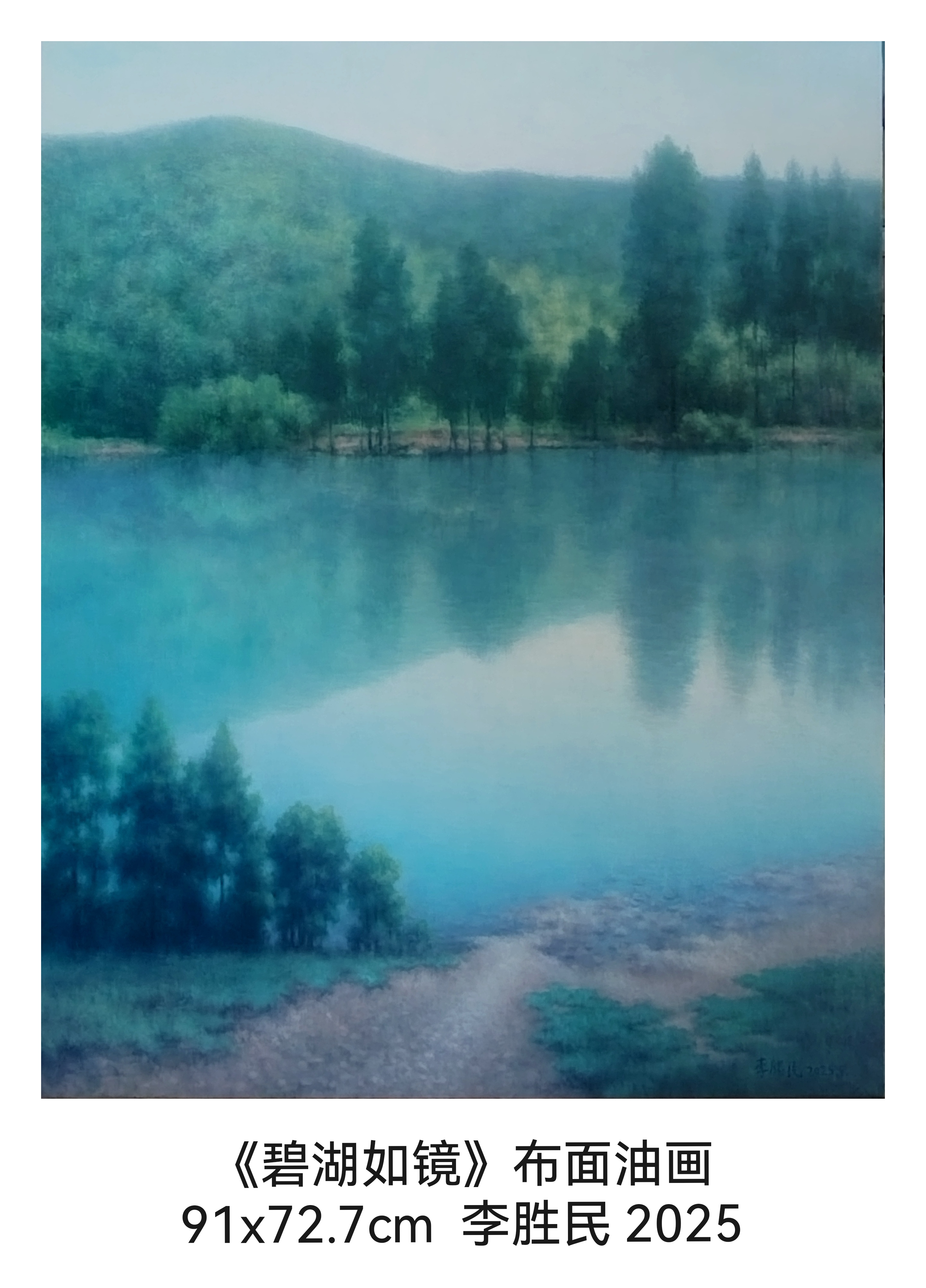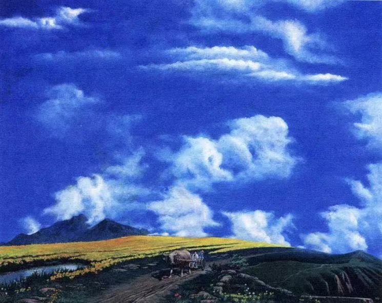 作品融合了西方油画的色彩与质感,和中国传统山水的意境美学.