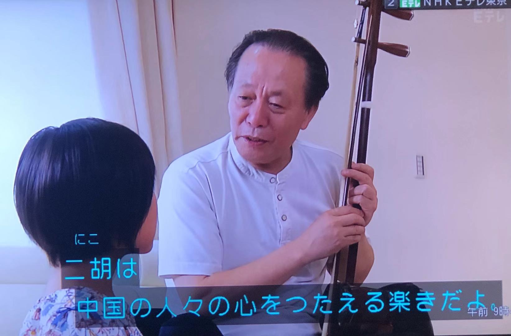 荣幸的是:我出演了剧中的"姥爷"。受NHK委托,我还为其剧创作二胡曲"车到山前必有路"并演奏。