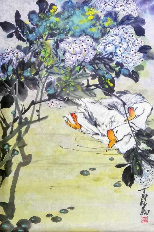画由紅黃蓝三色调配千奼万紫山鸣水动; 乐自哆咪嗦五音奏出秋红春绿情景交融。