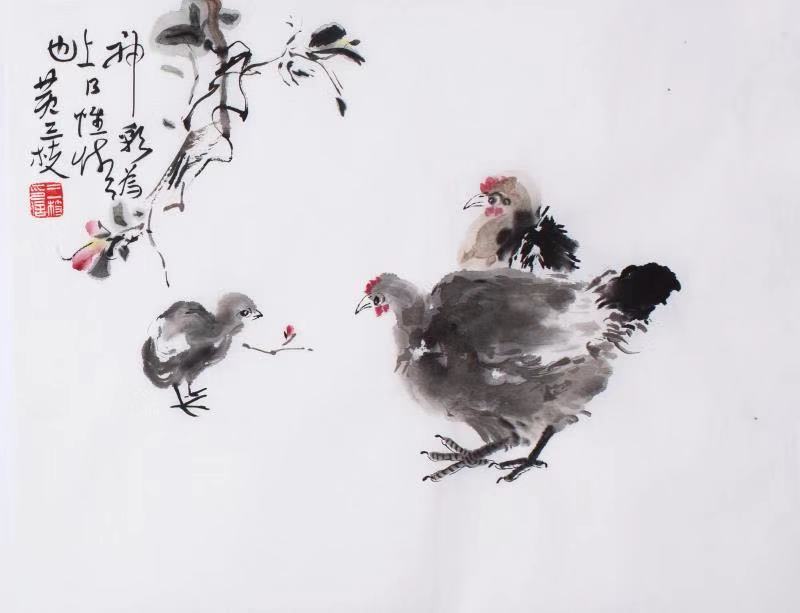 宋代诗人苏东坡有诗为证,“竹外桃花三两枝,春江水暖鸭先知”,我们不知道黄三枝的名字里是否含有“真善美”的意蕴,但我们观赏他的花鸟作品,从他的笔墨里我们能够感受到高古、清逸、洁净以及含蓄;我们能够体会到心灵与外物相交的感发作用,人品和画品在这里得到了完美和谐的统一,衍生出一种难以言传的“禅”的意境。