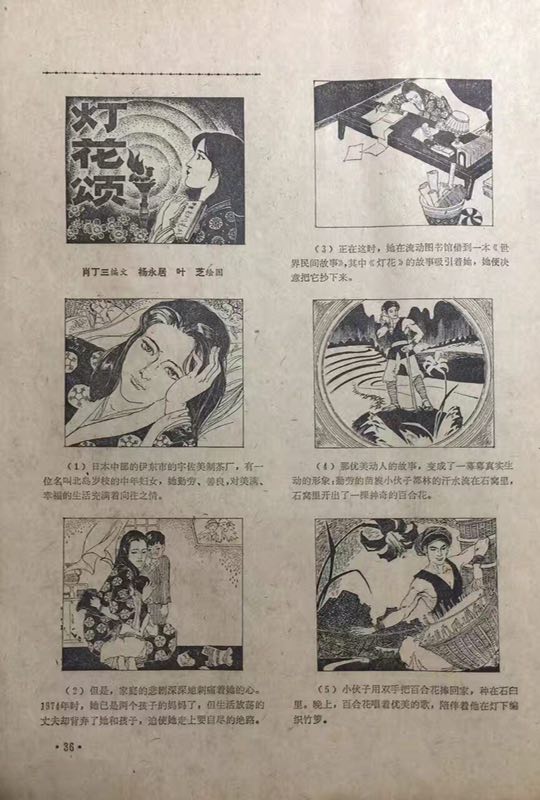 北嶋女士读了肖甘牛「灯花」文学作品后取消了一家自杀的念头,我画的「灯花」的连环画在中国妇女雜誌上发表后促进了「灯花」访问団访问中国,这大概就是文学艺术功能的社会效应。