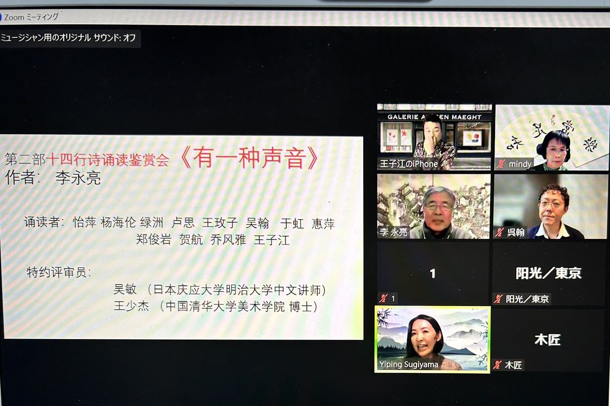 自2023年7月15日第一部《十四行诗诵读鉴赏会》举办以来,得到了海内外诗歌界以及诗歌爱好者的广泛重视和支持。11月18日(星期六)晚上8点由公益法人亚洲文化艺术协会主办,社交平台“东京两点”协办,《日中商报》等媒体联合推出的第二部《十四行诗朗读鉴赏会——有一种声音》在zoom上又如期举行。