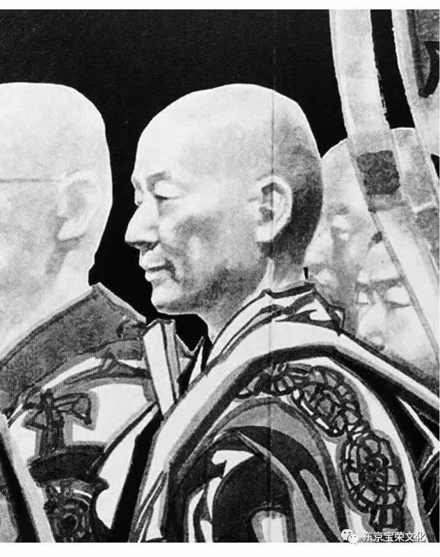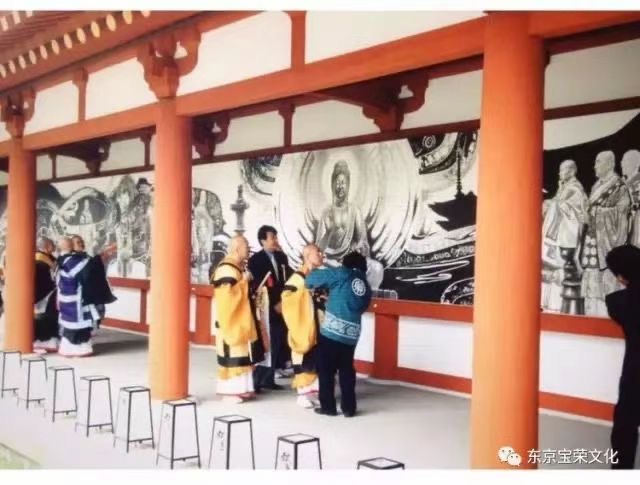 在这个大型活动的开幕式上,我这幅作品先在东京银座美术馆展出,举行的奉纳的仪式。然后他们药师寺的大和尚还有他们主要事务所的代表都来到东京接收了,这部作品展出以后运到药师寺,于是,我也得到了他们的表彰,这幅作品做为药师寺永久的收藏了。 当时这个作品在创作过程中,遇到了很多的事情,有缘分,有困难,也有启发。同时让我加深了对于日本佛教的理解。画面中出现的人物,都是二十世纪药师寺里的和尚。 这个作品在创作过程中,日本NHK给我做的一个五十分钟专题的节目。他们说,王老师用绘画记录了药师寺二十世纪最后的这些僧人们的活动。药师寺是世界文化遗产,所以这幅作品作为世界文化遗产的一部分被登录了。 这幅作品在药师寺展出的时候,咱们中国的佛教协会,佛教学院有五十人出席。佛教学院还包括中国各个地方的佛教的头领僧人。他们当时正在日本访问,听到这个消息以后,药师寺特邀他们来出席这个开幕式,他们感到非常的高兴,药师寺也感到很自豪,大家都感觉到中日之间的这种友好交流,是一个非常好的故事。