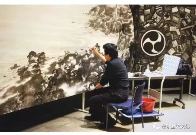 通过这幅作品的创作,我后来在中国艺术研究院做访问学者的时候专门写了论文,因为这个创作。与国内的清华美院,中央美院的壁画系,上海交大的设计系等大学都做了广泛交流,他们对我使用日本壁画的方法来创作这种大型作品,也很感兴趣。 在日本的近三十年的时间里,我平常的艺术活动,包括在日本各个地方的教学,讲座呀,还有大型创作过程,都做了很多的准备工作,特别是我的这种大型的水墨画创作的方法,是受到中国古代壁画,包括寺庙里面的壁画,墙壁上的壁画的影响,后来我学习了日本壁画的技术,用这种融合的方法创作了一百米的作品。所以日本的很多的艺术家,评论家、看了我的一百米作品,他们也感到很欣慰,觉得中日之间的这种文化艺术交流,产生的这么一个结果,他们也感觉到、确实是民间的文化交流,非常非常的重要。