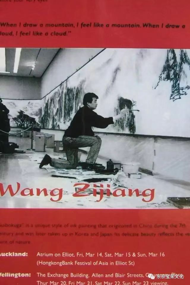 12:50 花絮(李永亮)五号台风平安地经过东京,给炎热的八月带来可怜的几丝凉意。这天,我和王子江先生约好在涩谷车站附近的警察交番碰头。在离约定时间还有5分钟的时候,我已经在人群中看见他了。我们握手“热暄”,我说:“王先生让你久等了”。他回答:“我也是刚到5分钟”。于是,我们绕过忠犬八公的铜像,穿过明治通里,乘坐扶手电梯,走进了马克城。一路上,王子江先生给我讲叙着参加香港五百人水墨画展的趣事。听着他的富有磁性的话语,不知为什么,我的眼前忽然浮现出一段二十五年前的往事,一段不同寻常的往事。 1992年6月21日,我们应千叶省浦安市文化财团的邀请,将在这里举行一次题为“中国传统艺能”的公演。考虑到热情的观众们大凡会在开演前早早的来到剧场,财团理事长渡边先生提出,能否在公演前和休息中,为观众进行别开生面的书画实演。 有朋友给我介绍了王子江,那时我还不认识他,也没有见过他的作品,手里有的只是他寄给我的一本作品照相册。 当日,我利用舞台彩排的空隙,到大厅察看书画实演的准备情况。首先映入眼帘的是:一位正在伏案作画的面目俊秀的年轻人,傍人告诉我,他就是王子江,第一个来到现场的画家。 这是我和王子江的第一次见面。
