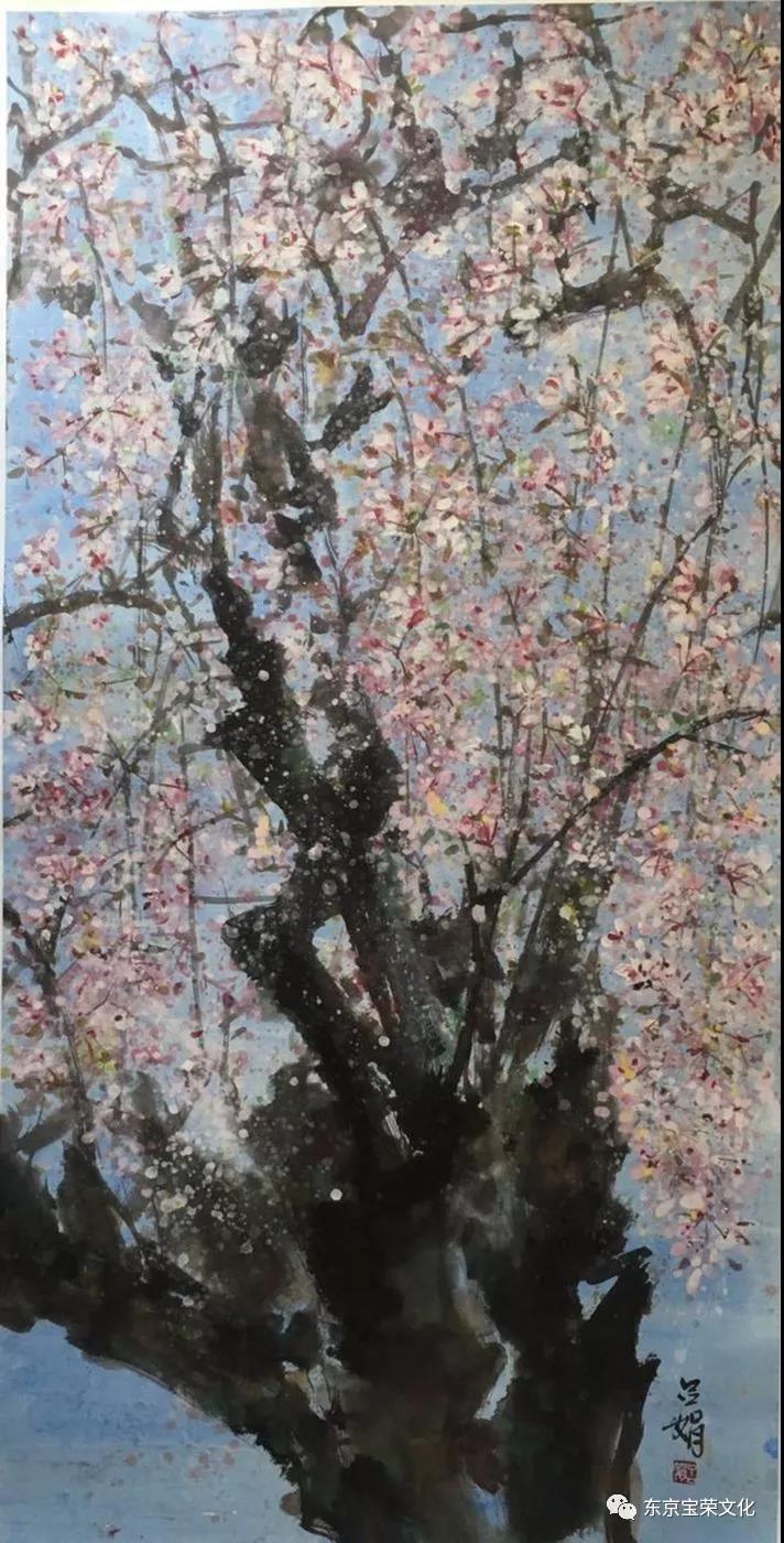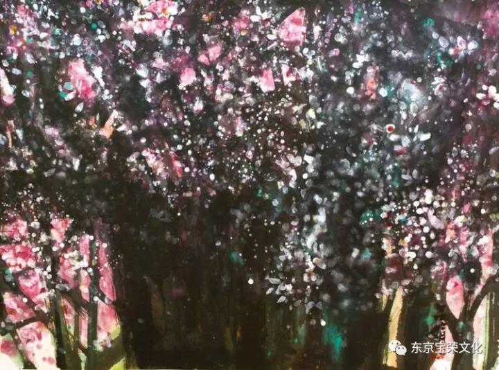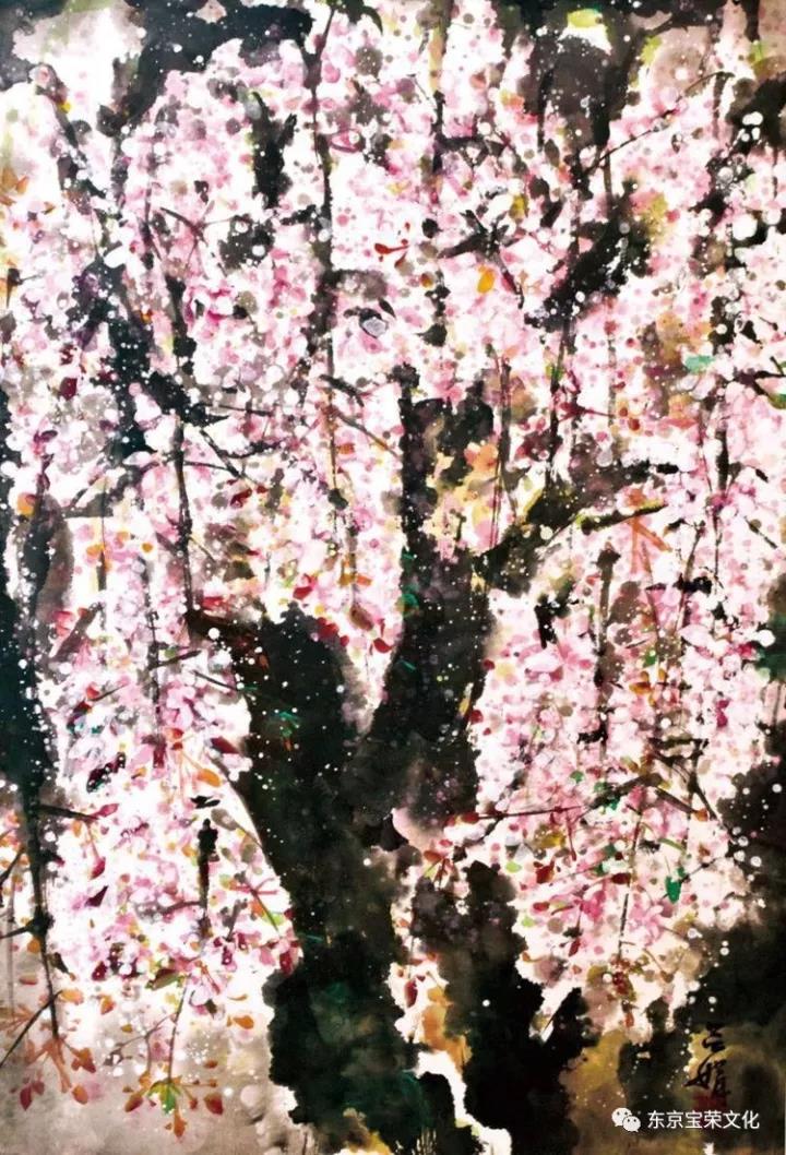 @吕娟 笔下的樱花,千姿百态,色彩艳丽,让人产生很多的联想。