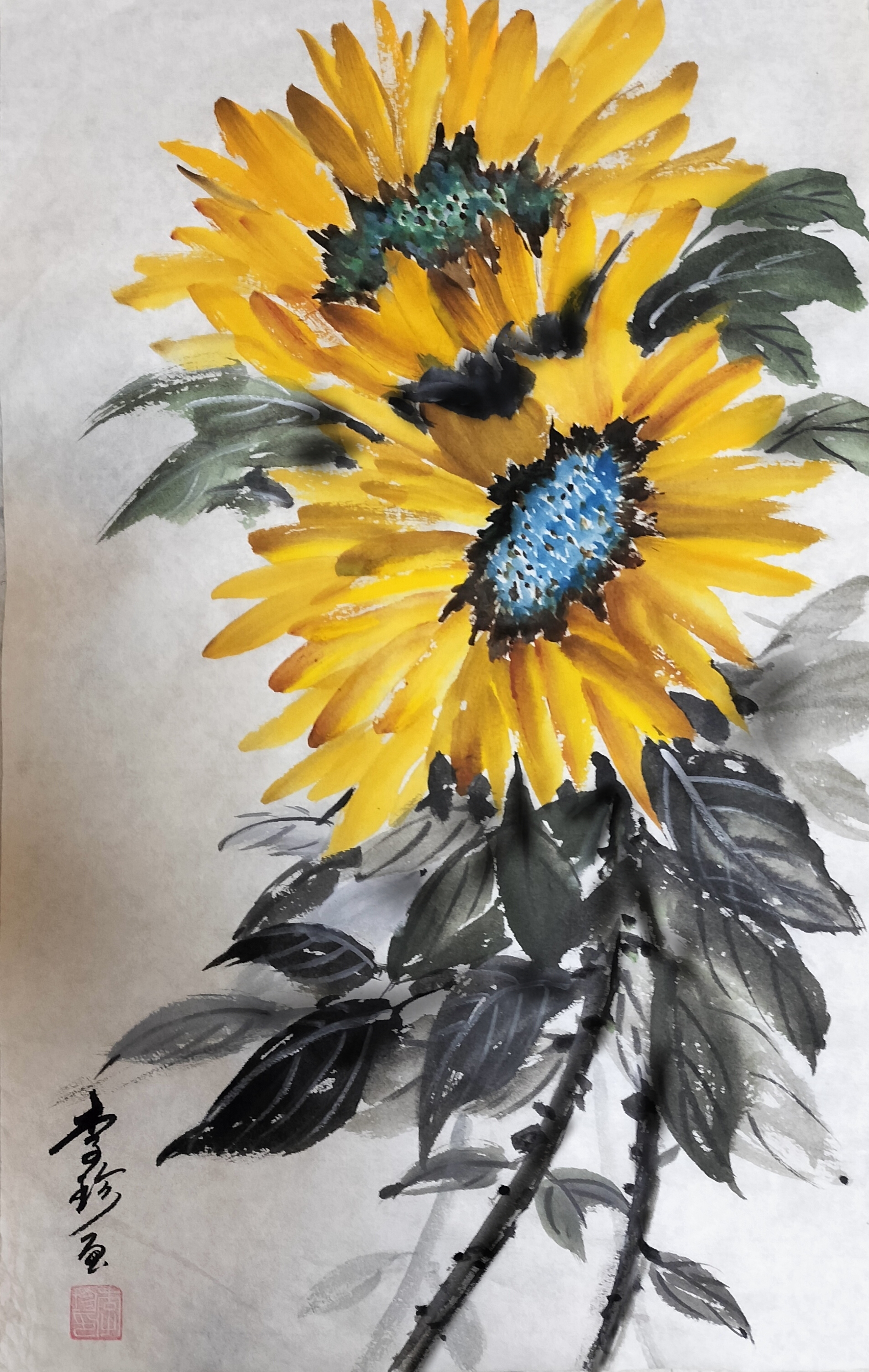 水墨画《向日葵》,作者:李珍