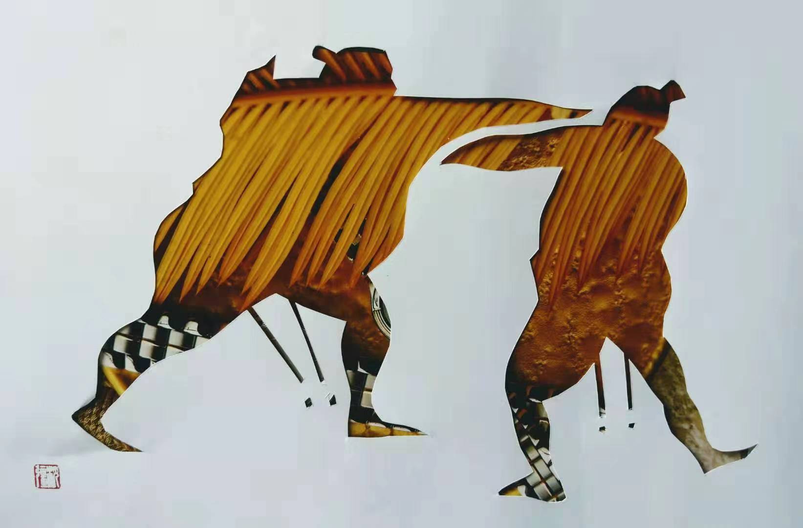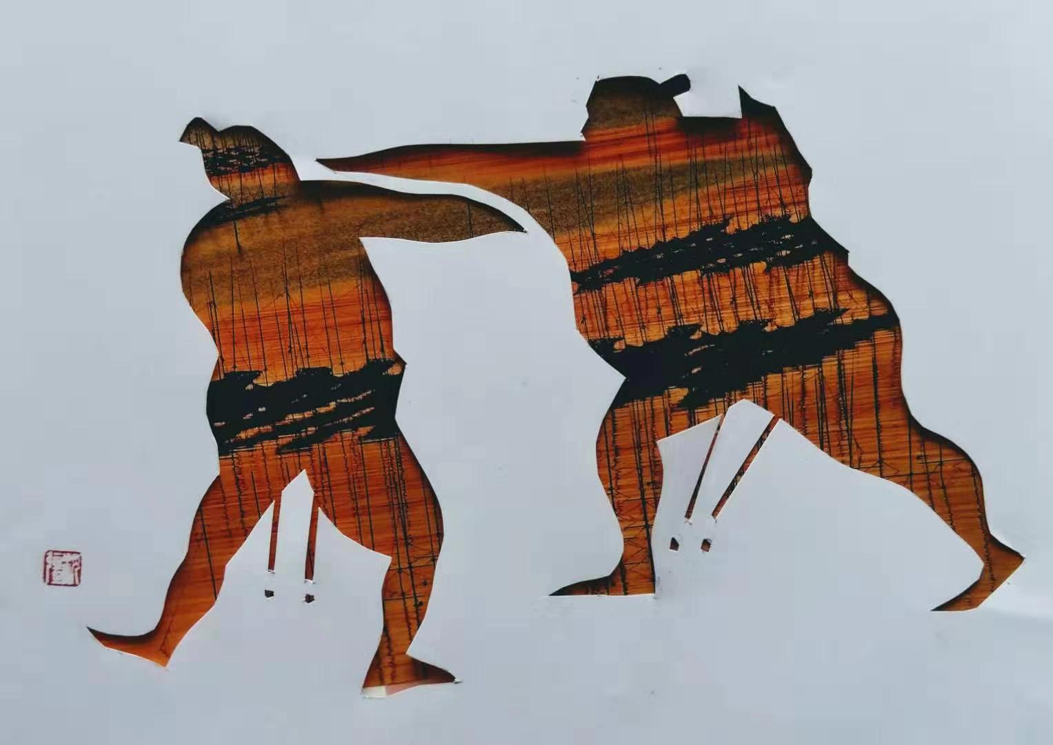 剪画"相撲"。(沈強作)