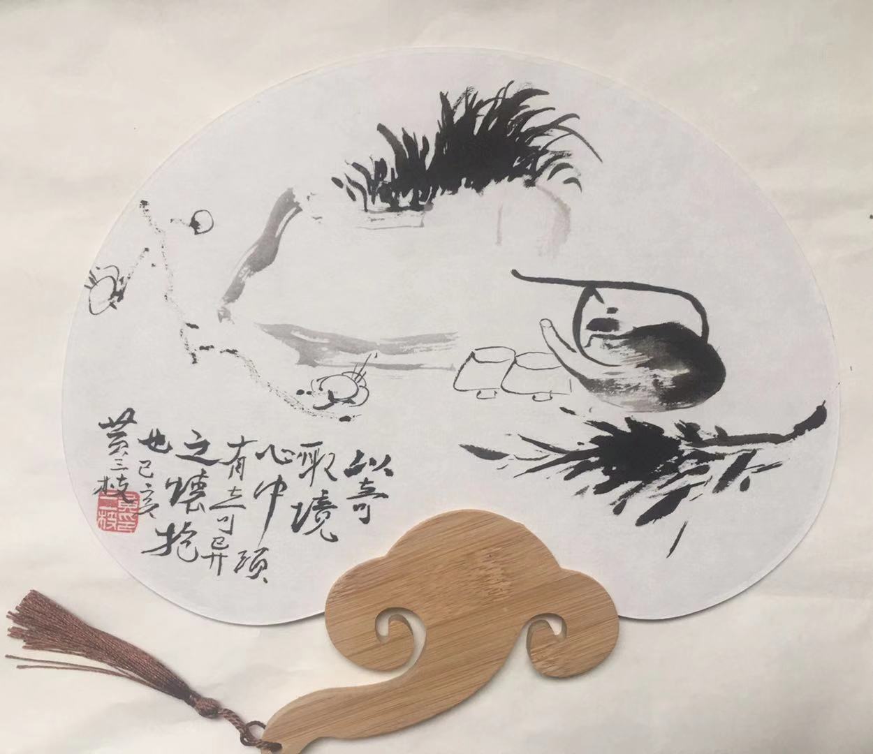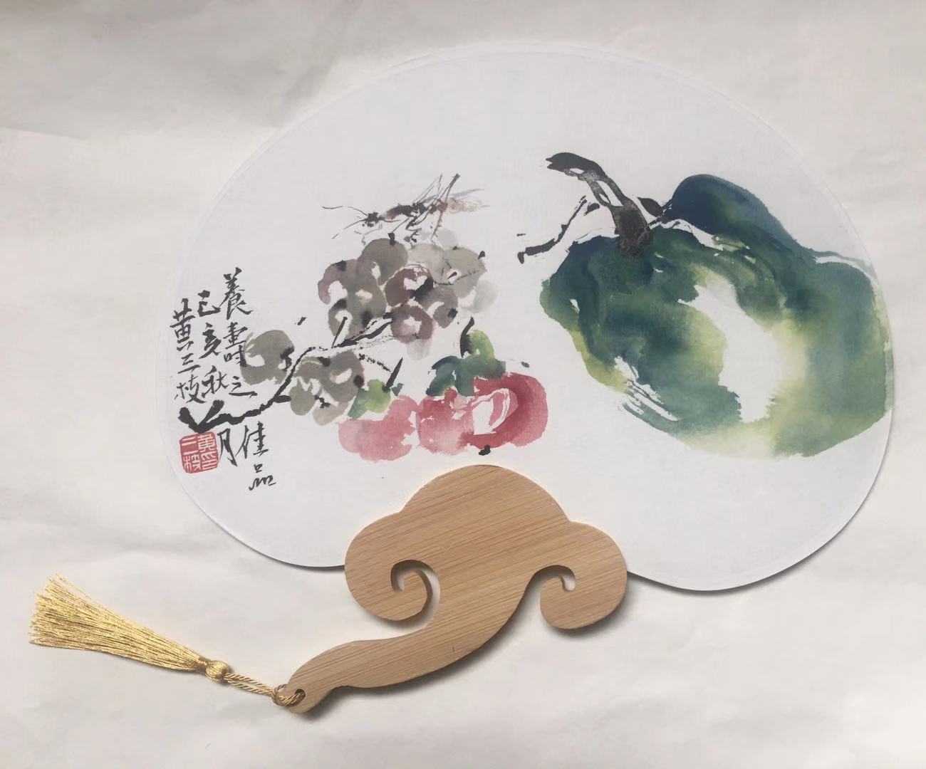 @黄三枝 手里拿着如意扇,我们能想到圆满和周到,欣赏扇面上的图案,我们能感觉到生命和力量