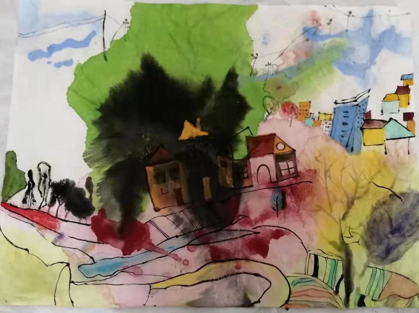 @徐雅姣希墨堂 积木般的房屋,拿着乐器的少女,宛如安徒生的童话世界