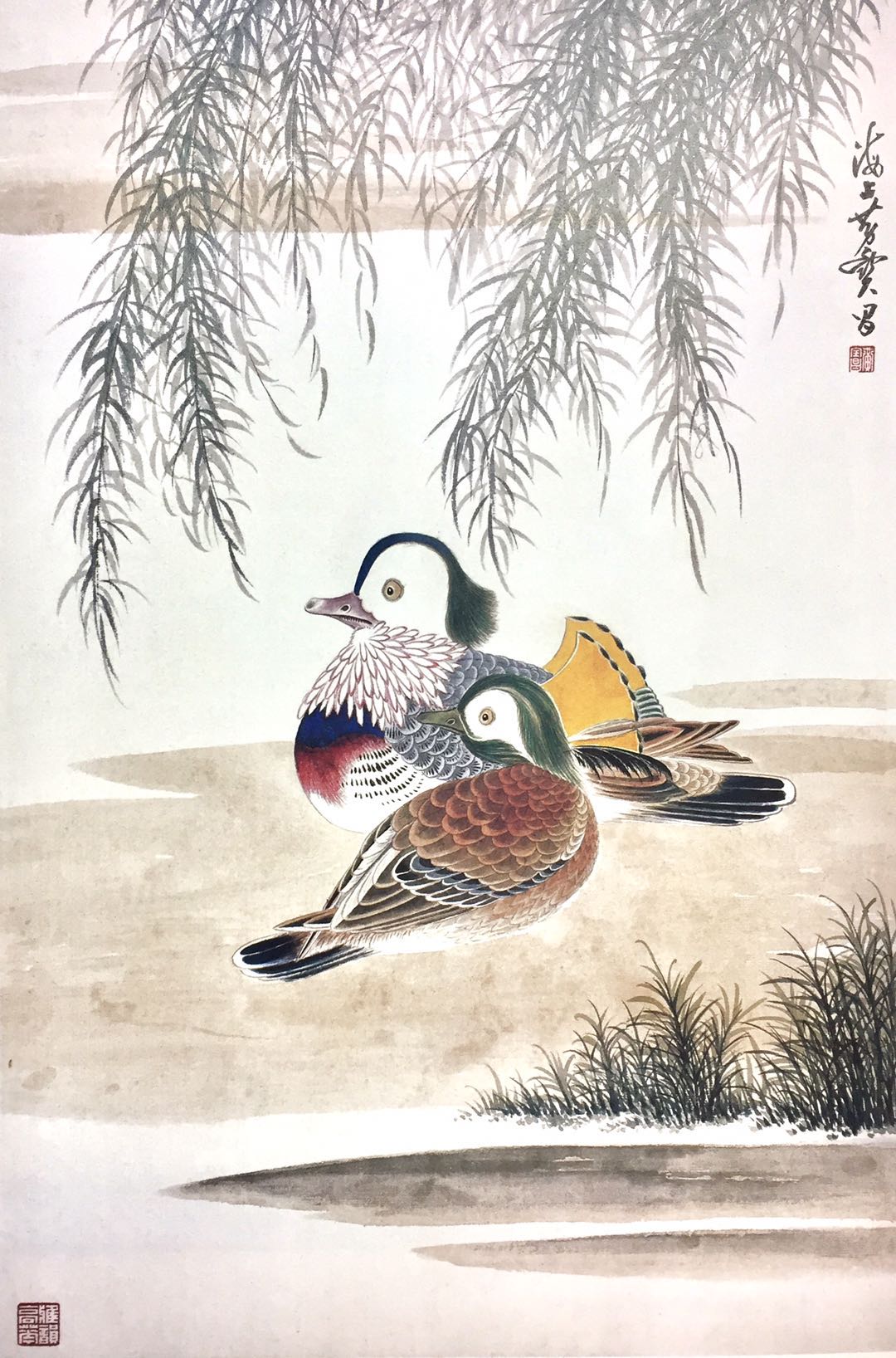 鸳鸯,纸本设色88x43。黄宝昌