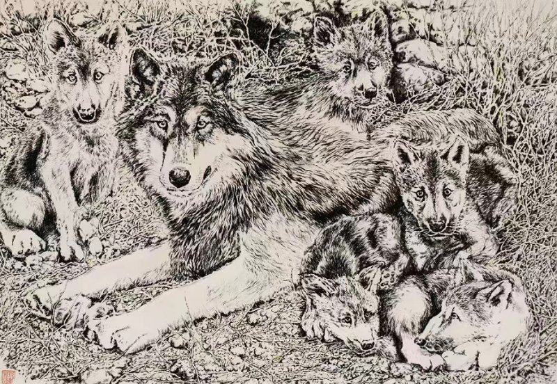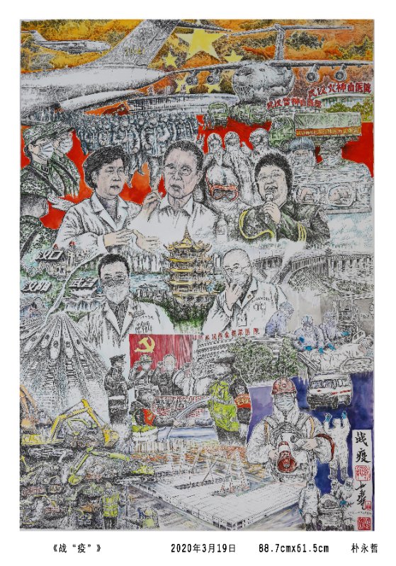 钢笔画 《战“”疫”》 《温和家族》 作者 朴永哲