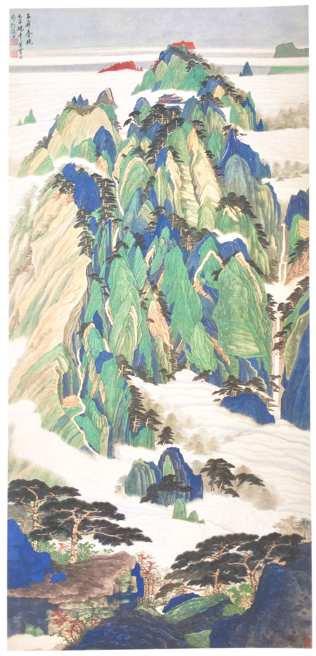 玉屏春哓.绢本青绿.180x85