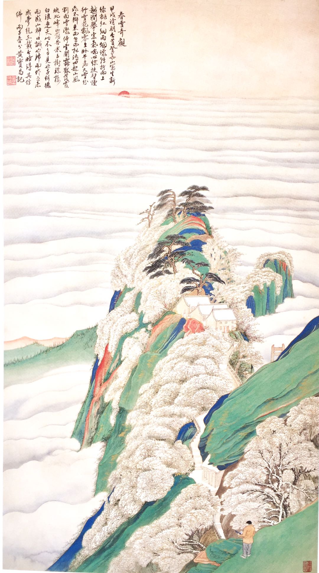 春雪奇观.绢本金碧.120x66。