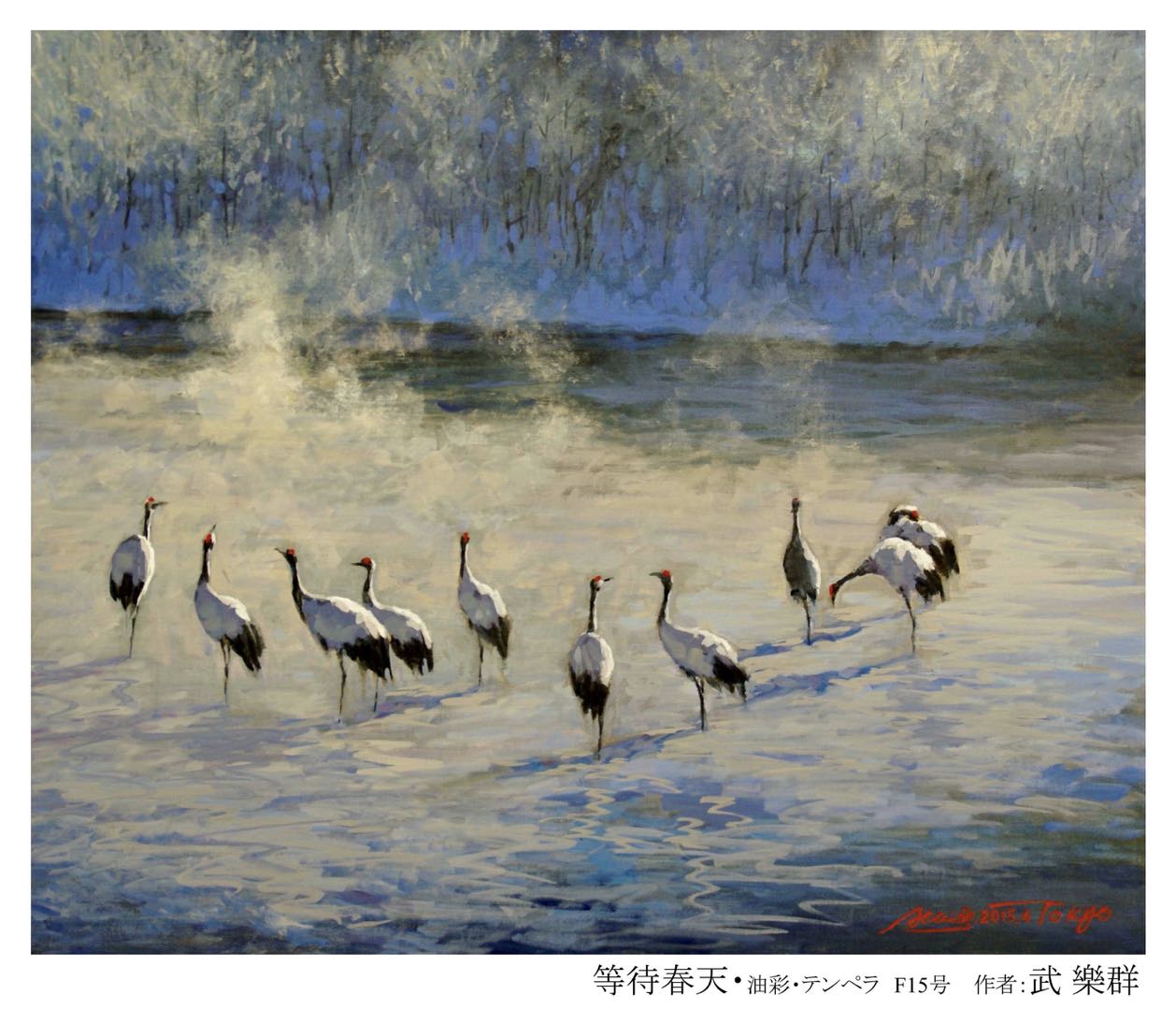 @武楽群 「夕照富士」,构图与众不同,不看富士山全貌,已知富士山之威严!「等待春天」,群鶴似是跳动的音符,浩渺的背景烘托出美妙的音响!