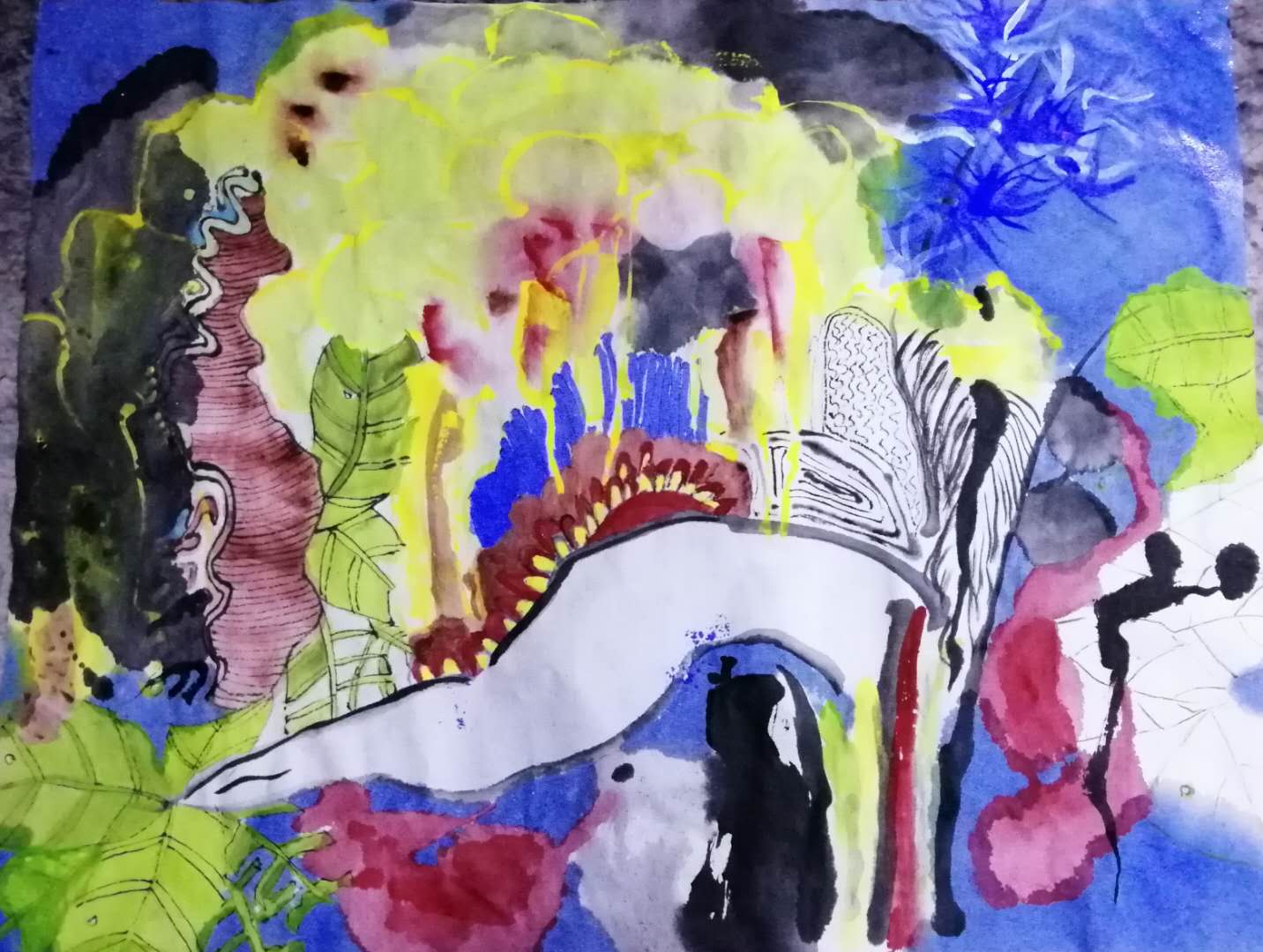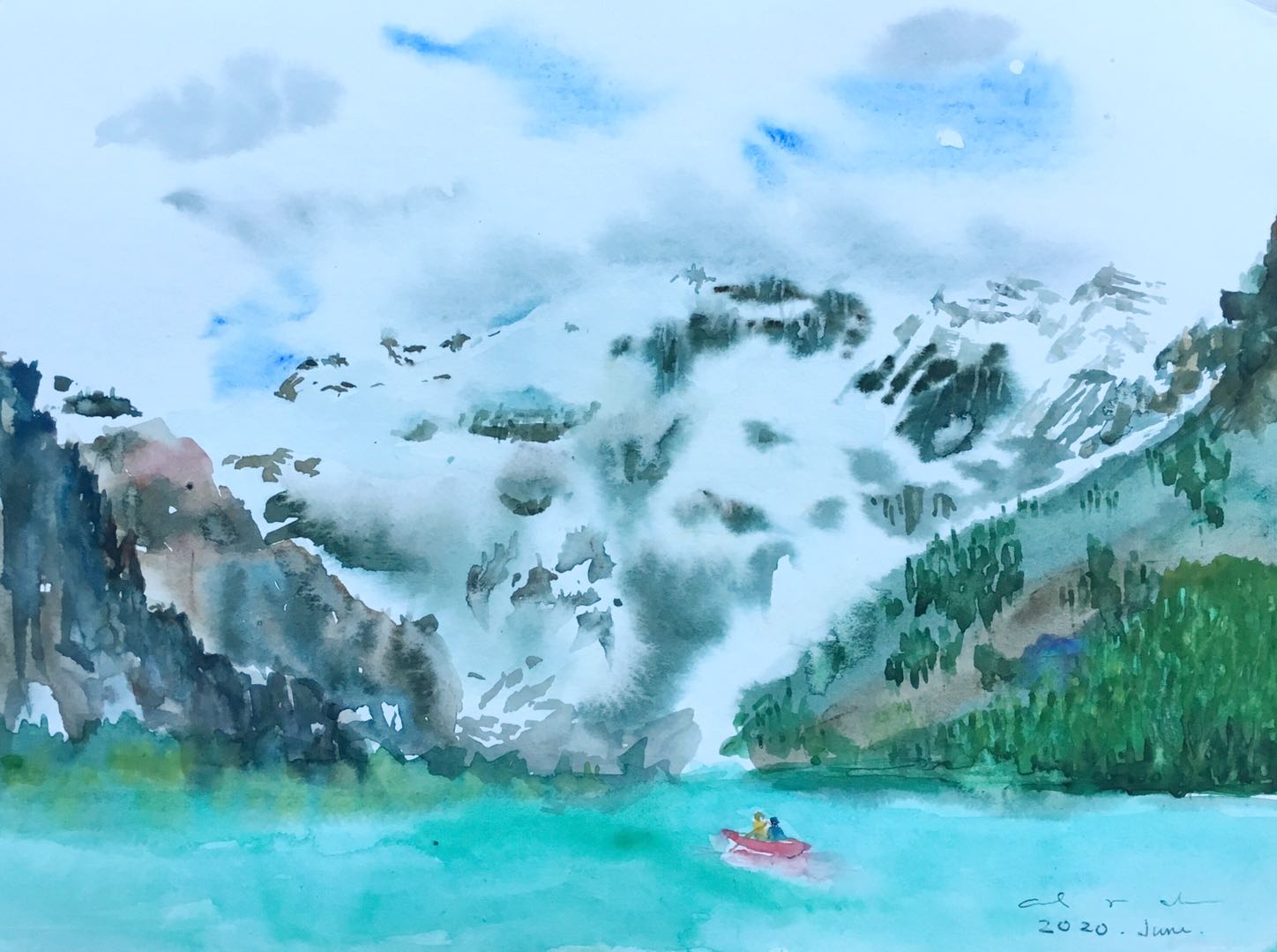 上野公园不忍池的荷花巳盛开,但疫情仍在继续蔓延中,不便前去观赏,画此孤芳自赏并求教于方家。