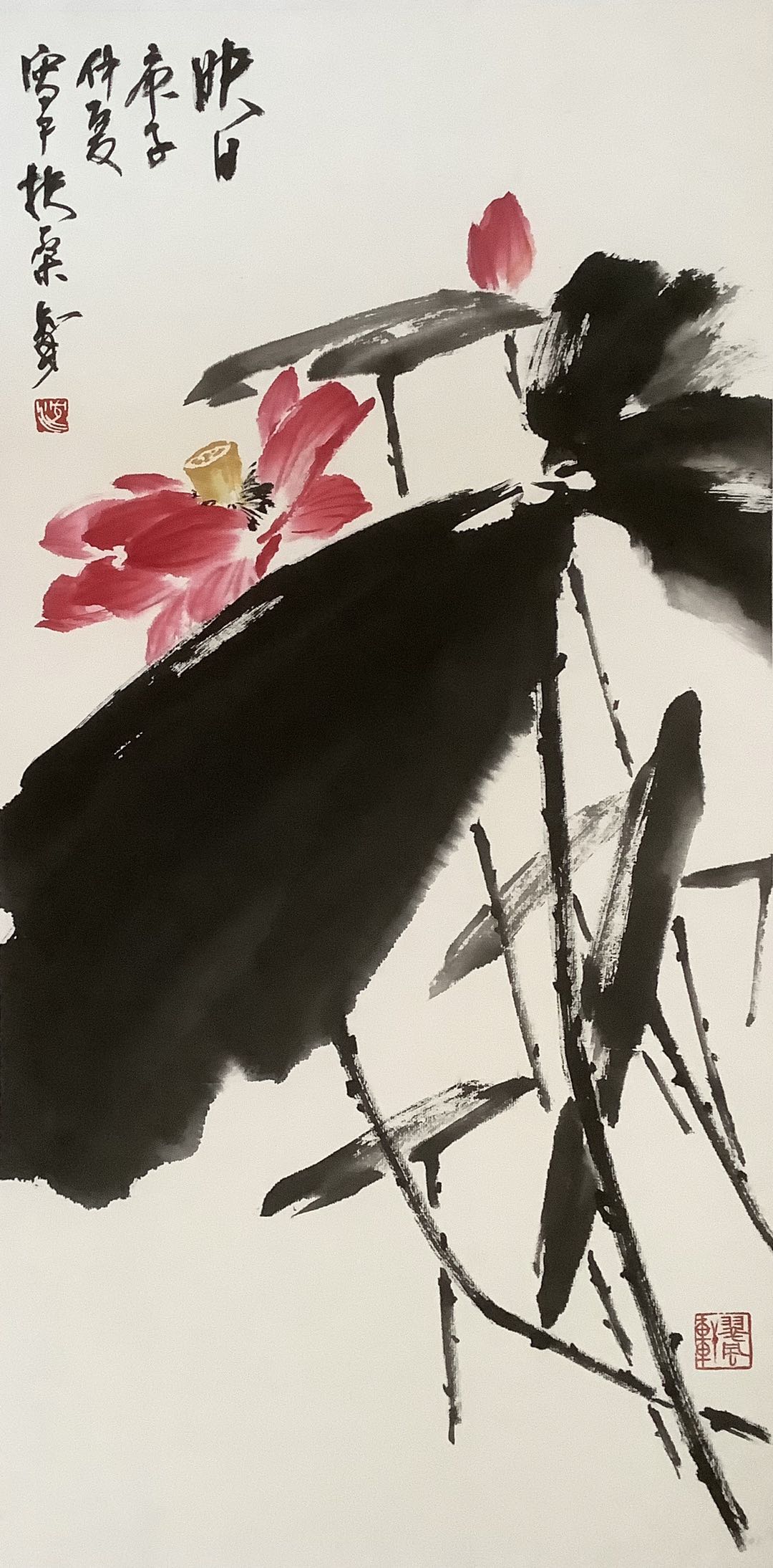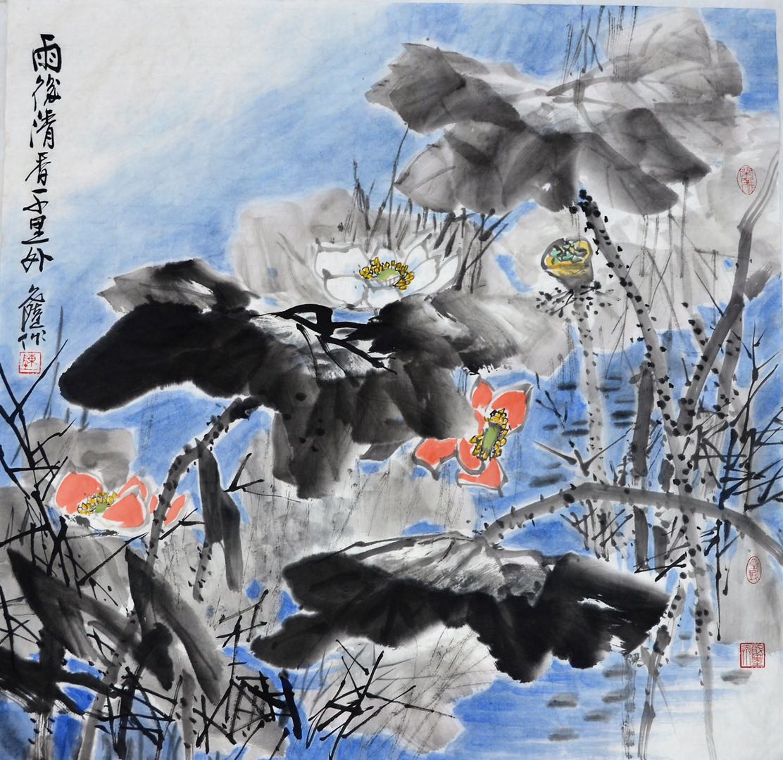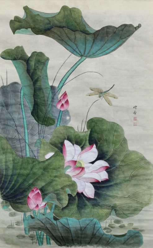@陳允陸 这样的荷花图,从色彩到构图,都别出心裁,游刃有余。