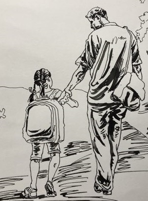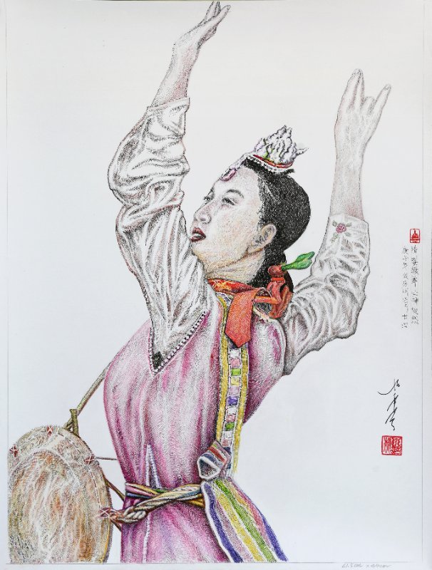 朴永哲钢笔淡彩画中国东北朝鲜族风情题材《清姿缦舞 心神怡然》