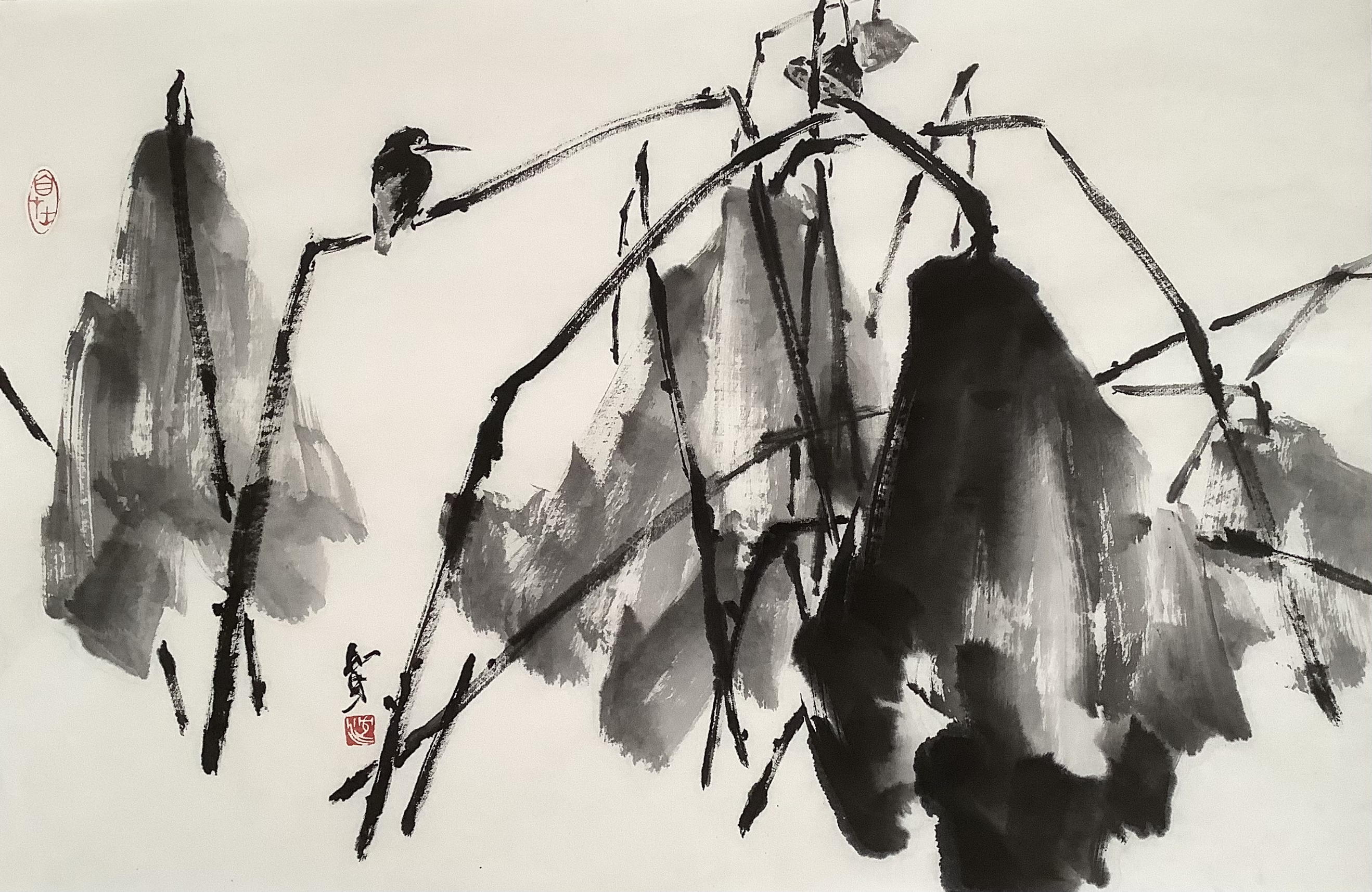 @沈 和年 秋荷翠鸟,潇洒笔墨写寒天