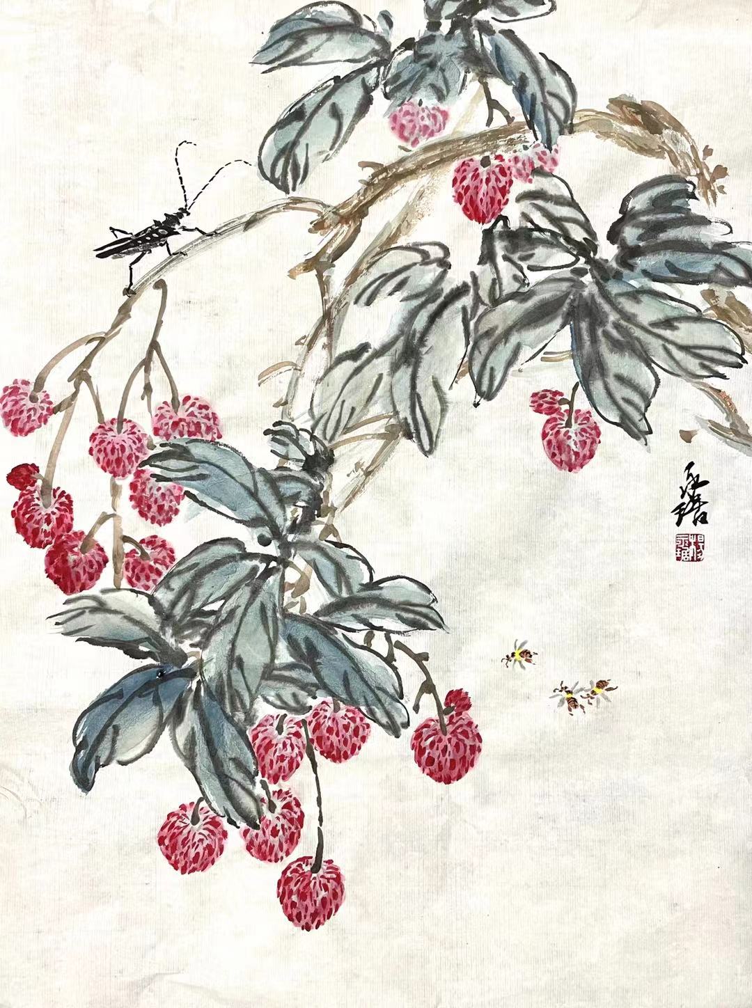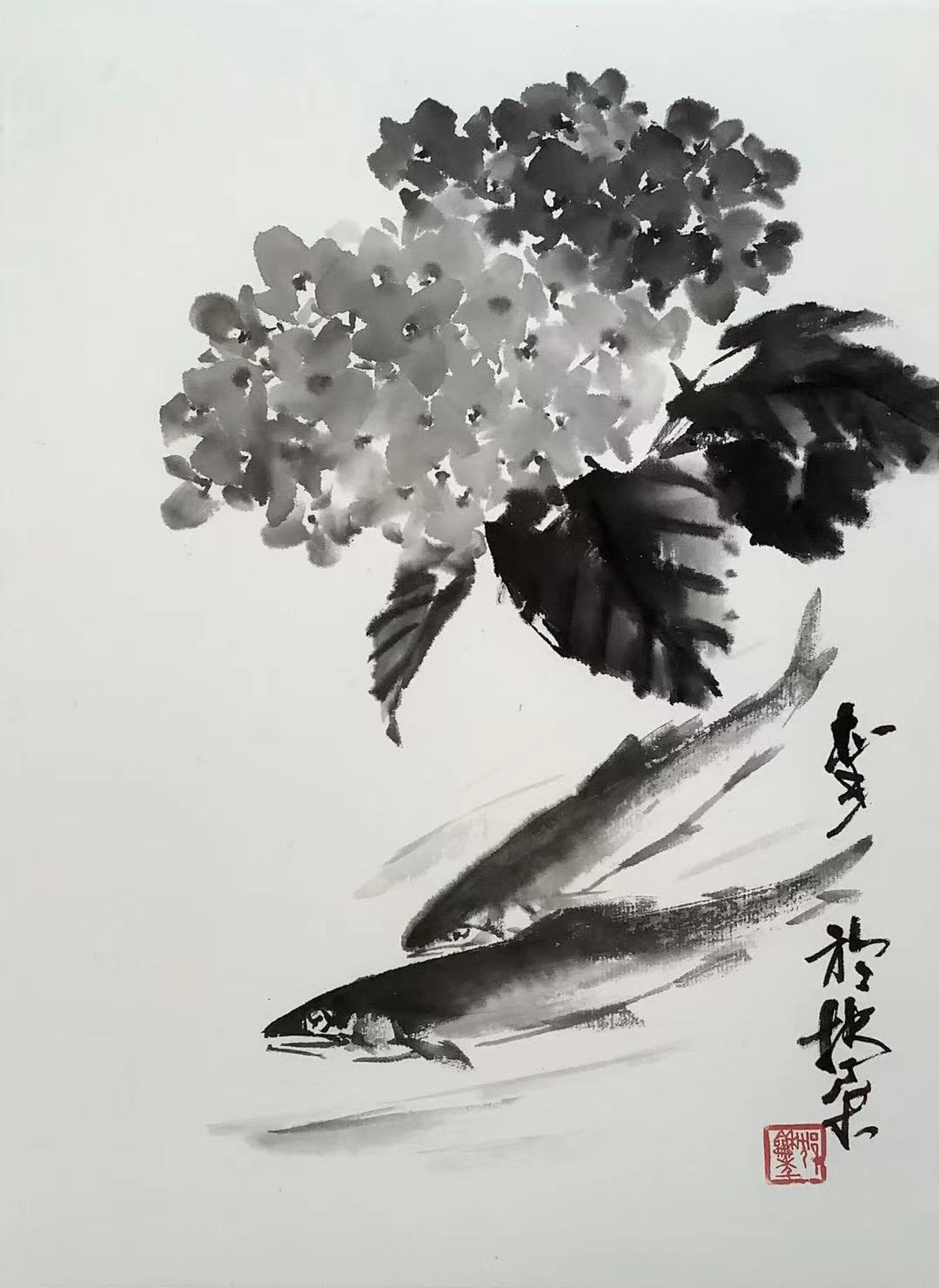 作者 沈 和年 笔轻墨分彩,鱼游花自闲。