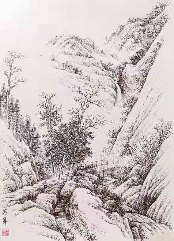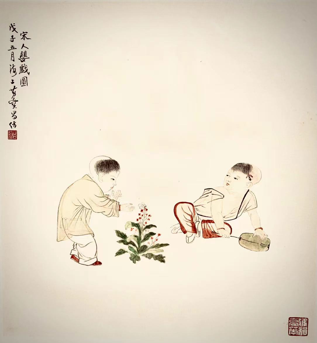 纸本册页.宋人"戏婴图" 纸本册页."黄山写生"