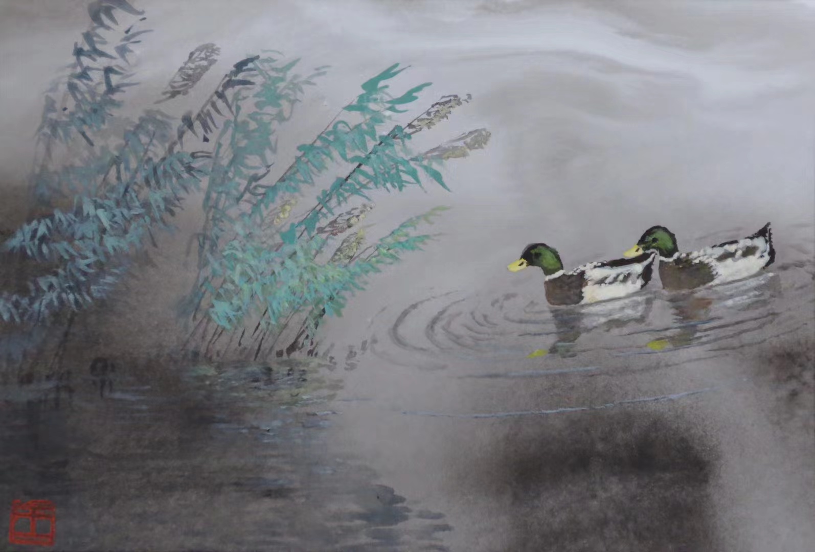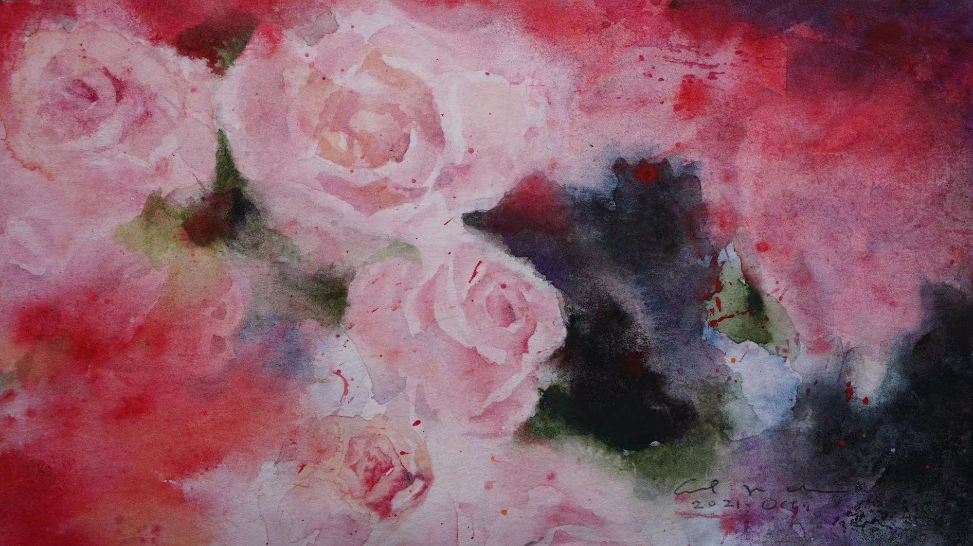 沈强的彩墨书法