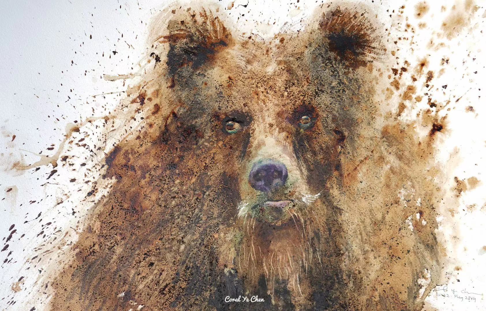 这是一张咖啡画,除了鼻唇用了点水彩,其余的全是咖啡