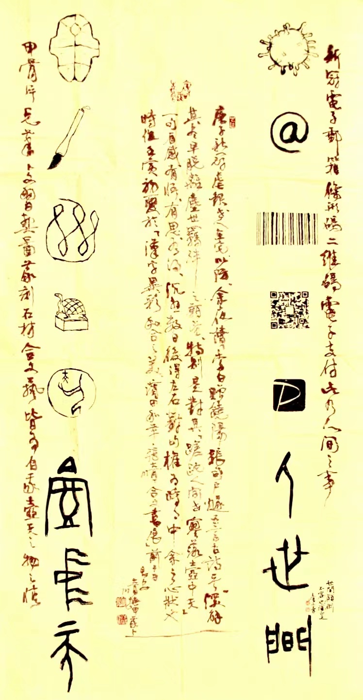(上聯)新冠菌 郵箱 條形碼 二維碼 電子購物 人間世