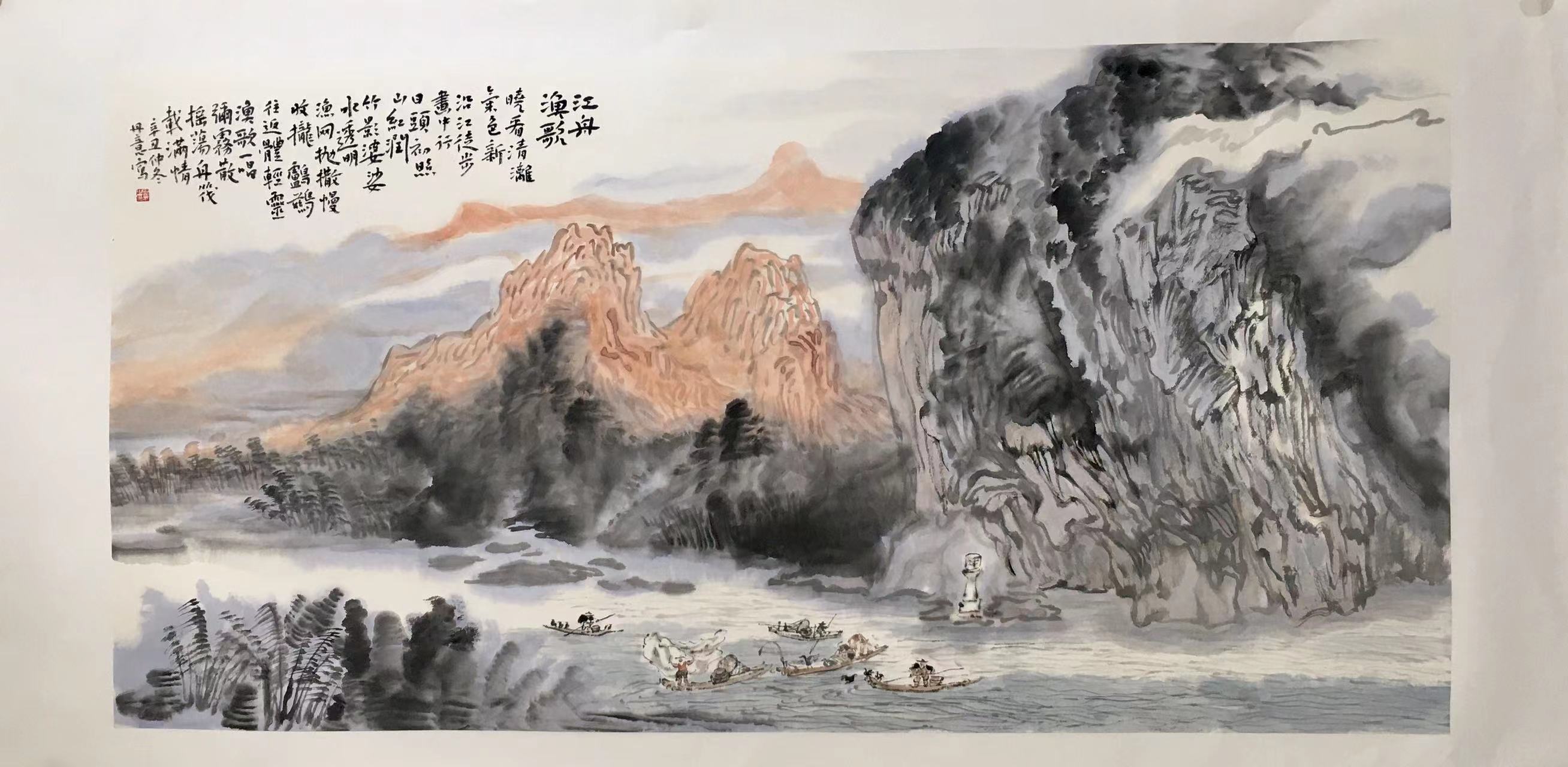 晓看清漓气色新,沿江徒步画中行;日头初照山红润,竹影婆娑水透明。渔网抛撒慢收拢,鸬鹚往返体轻灵;渔歌一唱迷雾散,摇动舟筏载满情!