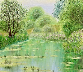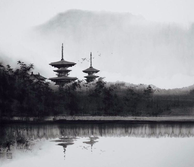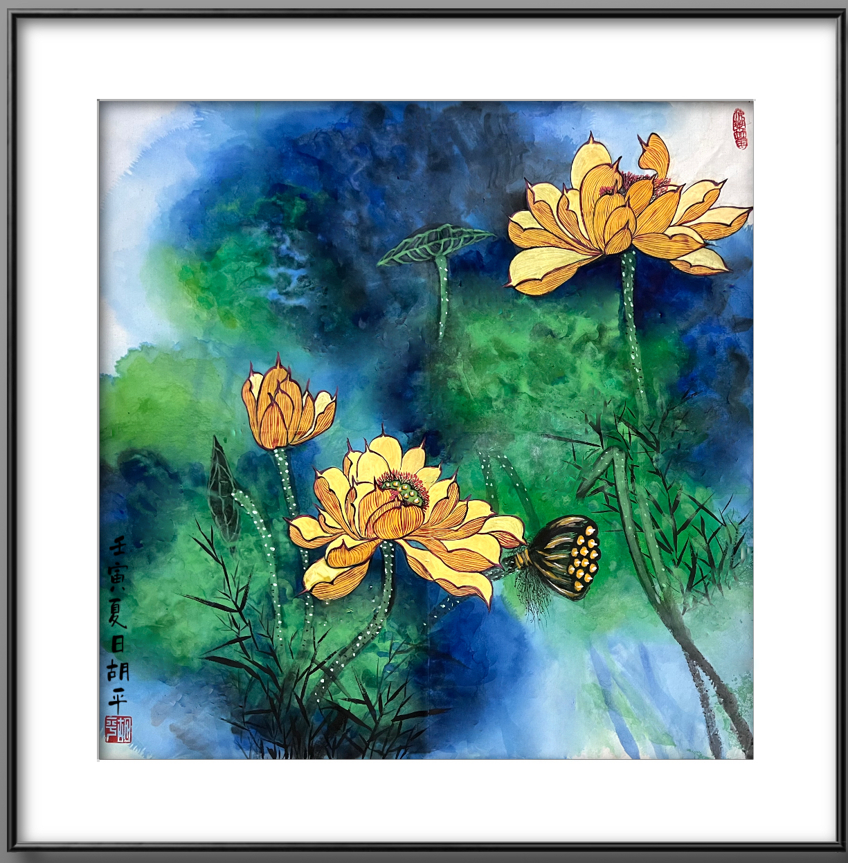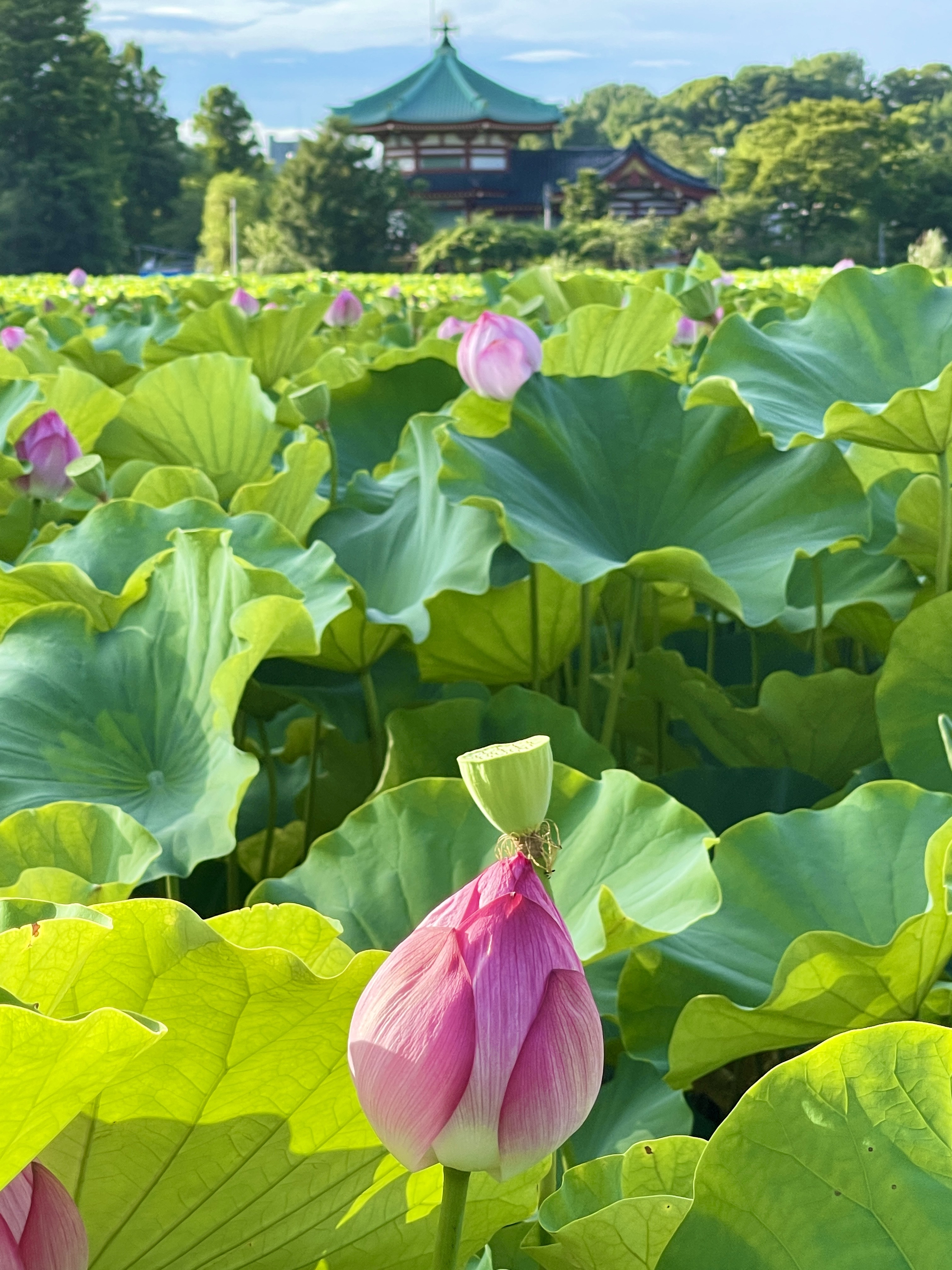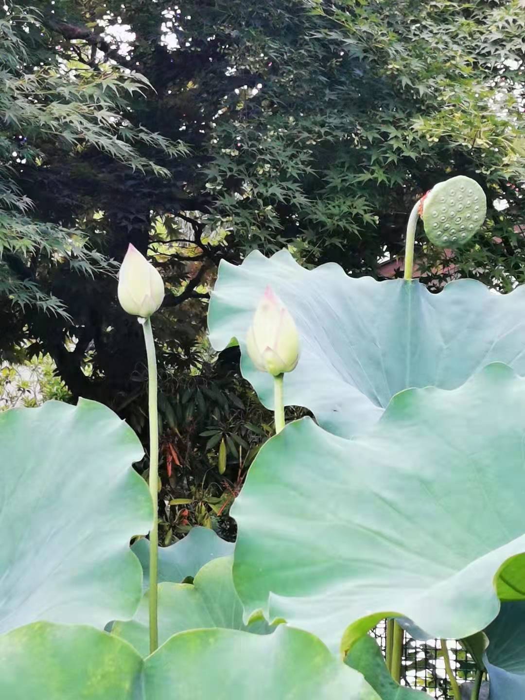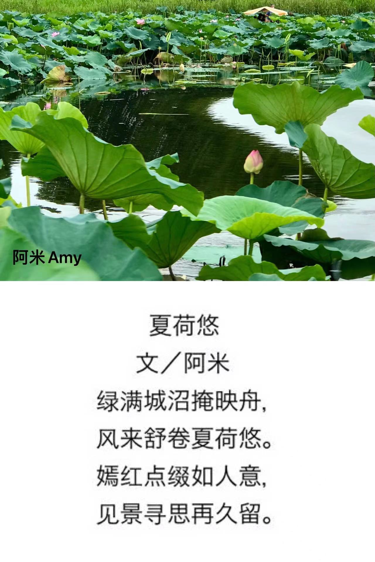 夏未泱,风暖叶田田。试入祥泉寺中看,半江池水半江红。暮色罩千秋。