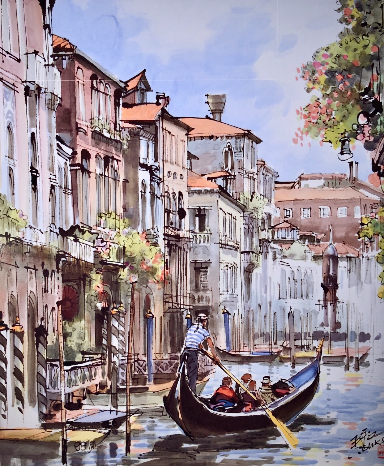 《陽光下的威尼斯》竹筆淡彩寫生  作者 王子江