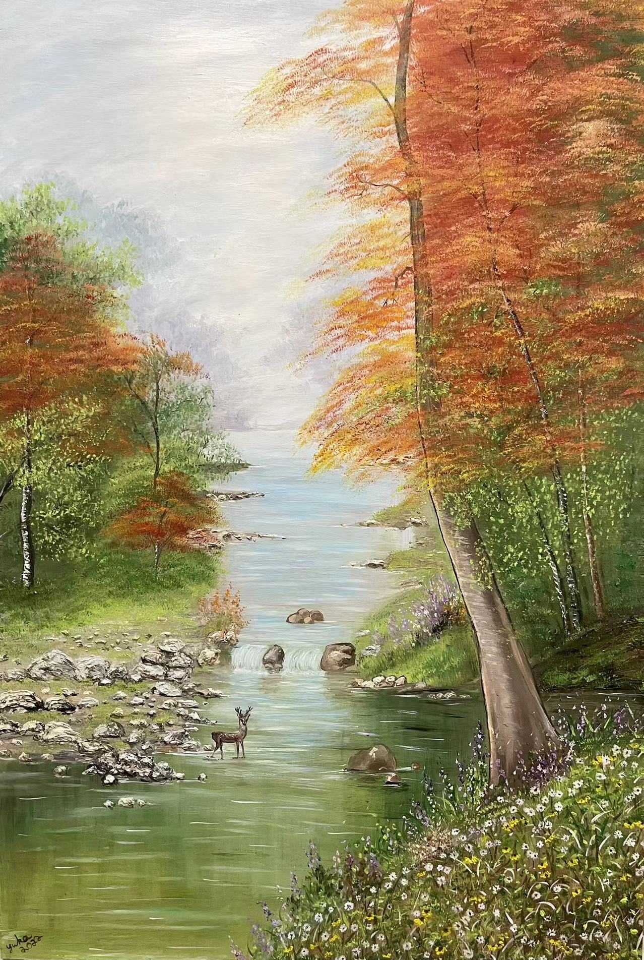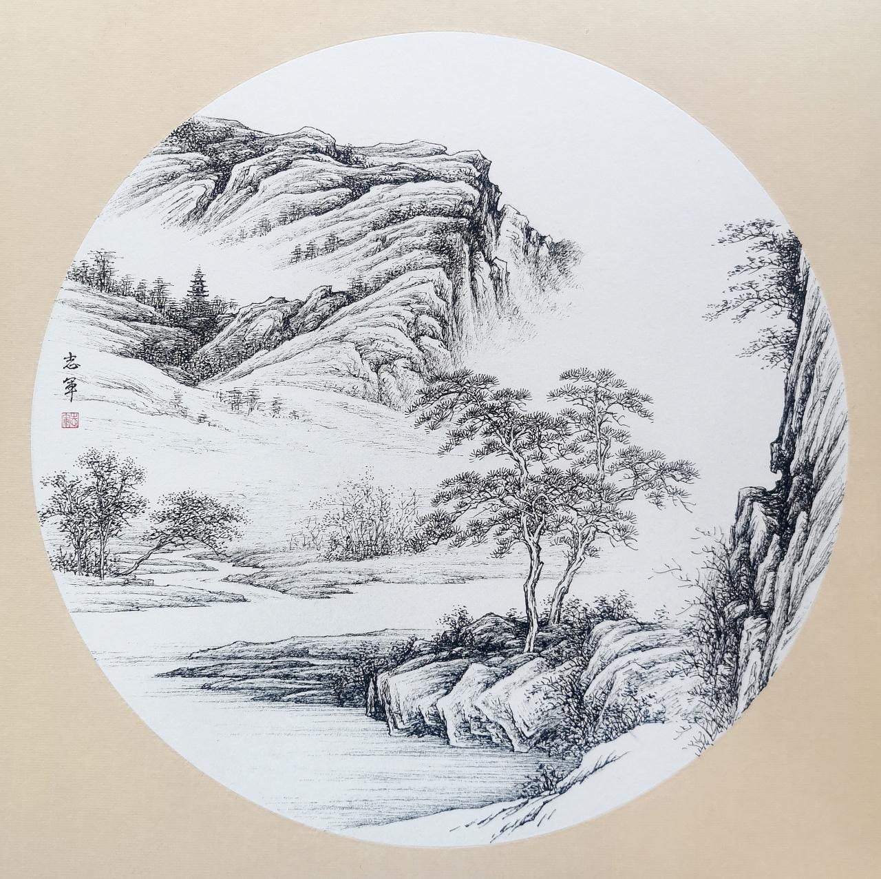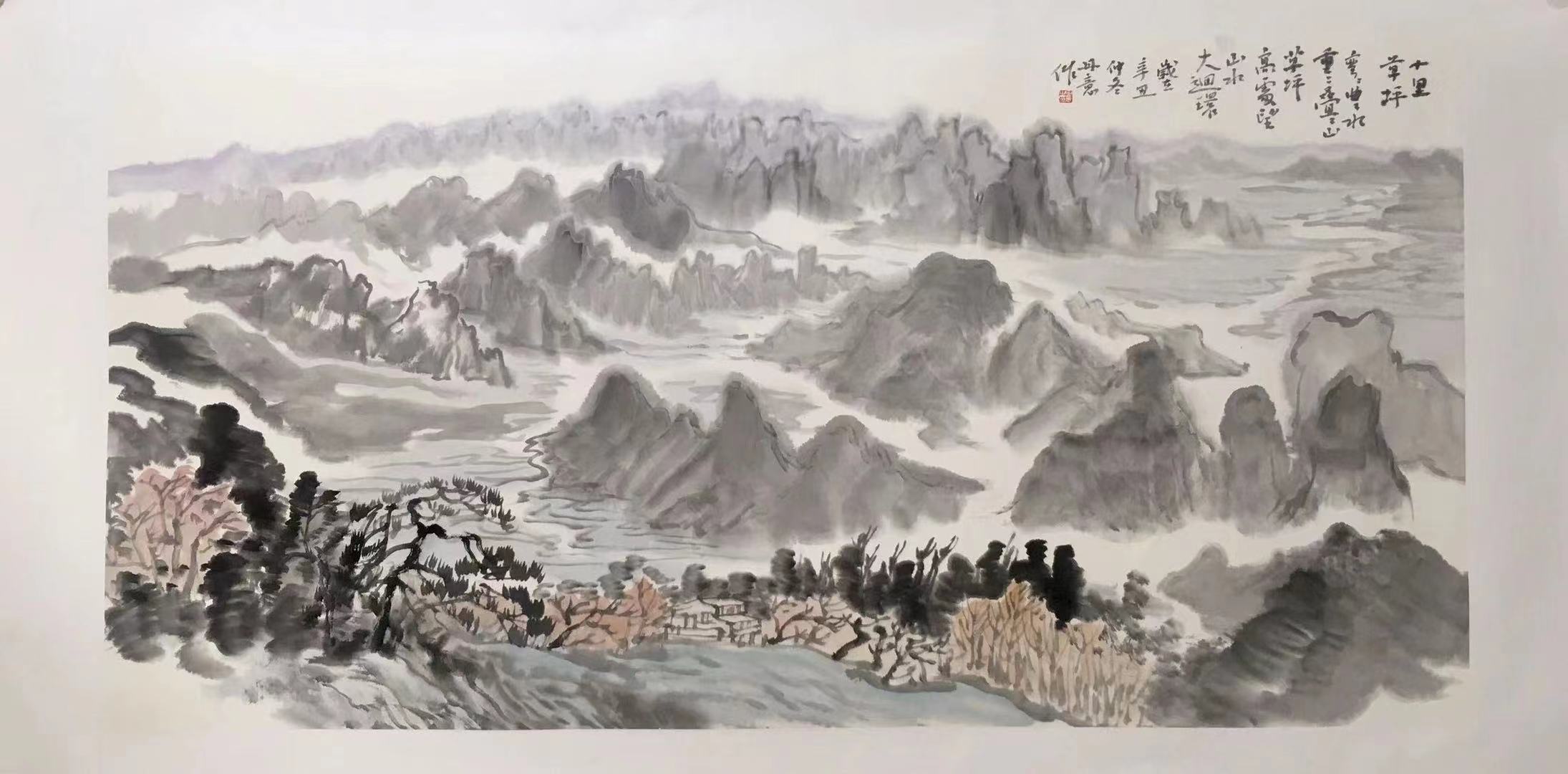 弯弯曲曲水,重重叠叠山;草坪高处望,山水大迴环!