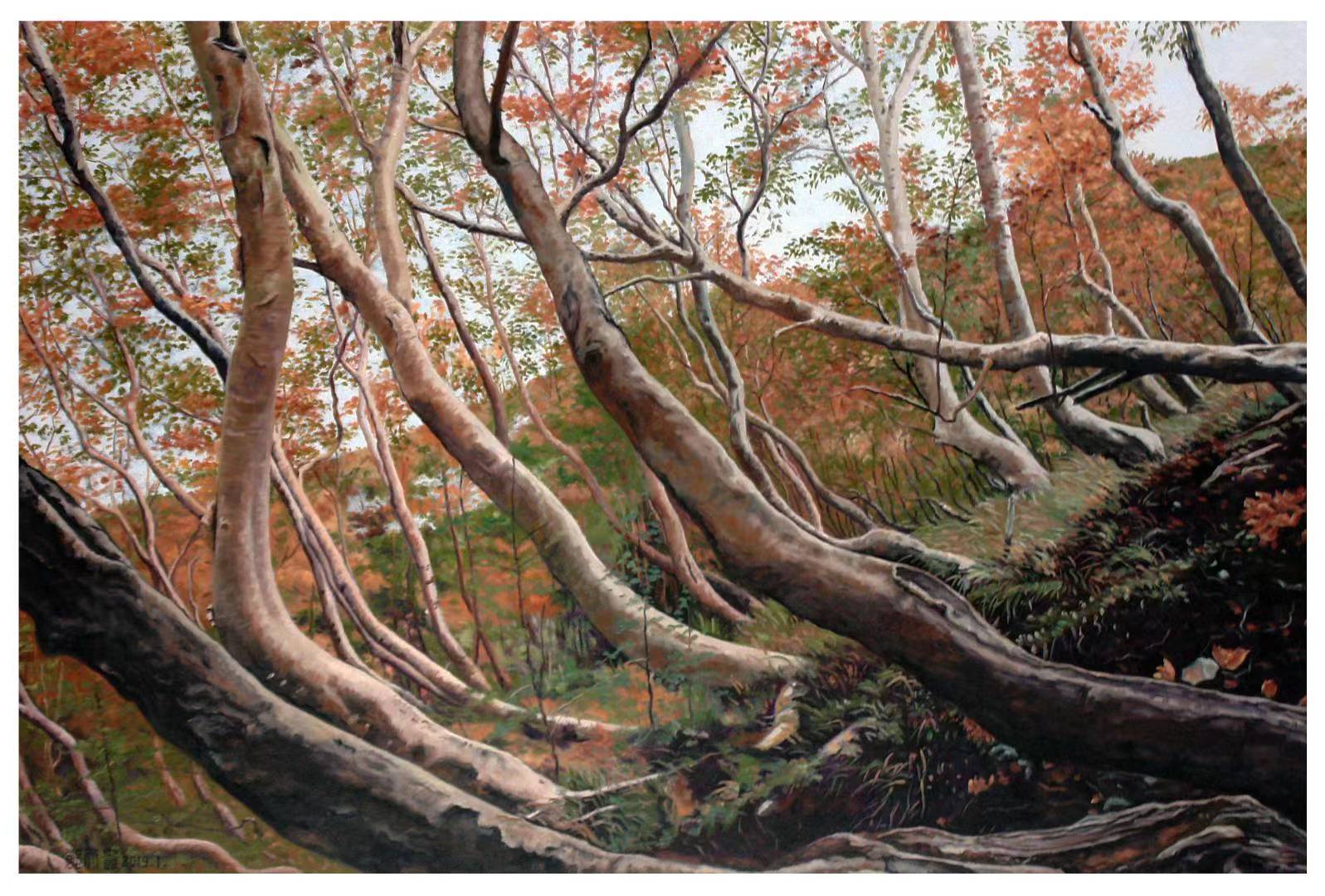 《富士山红桦林》都天贵油画