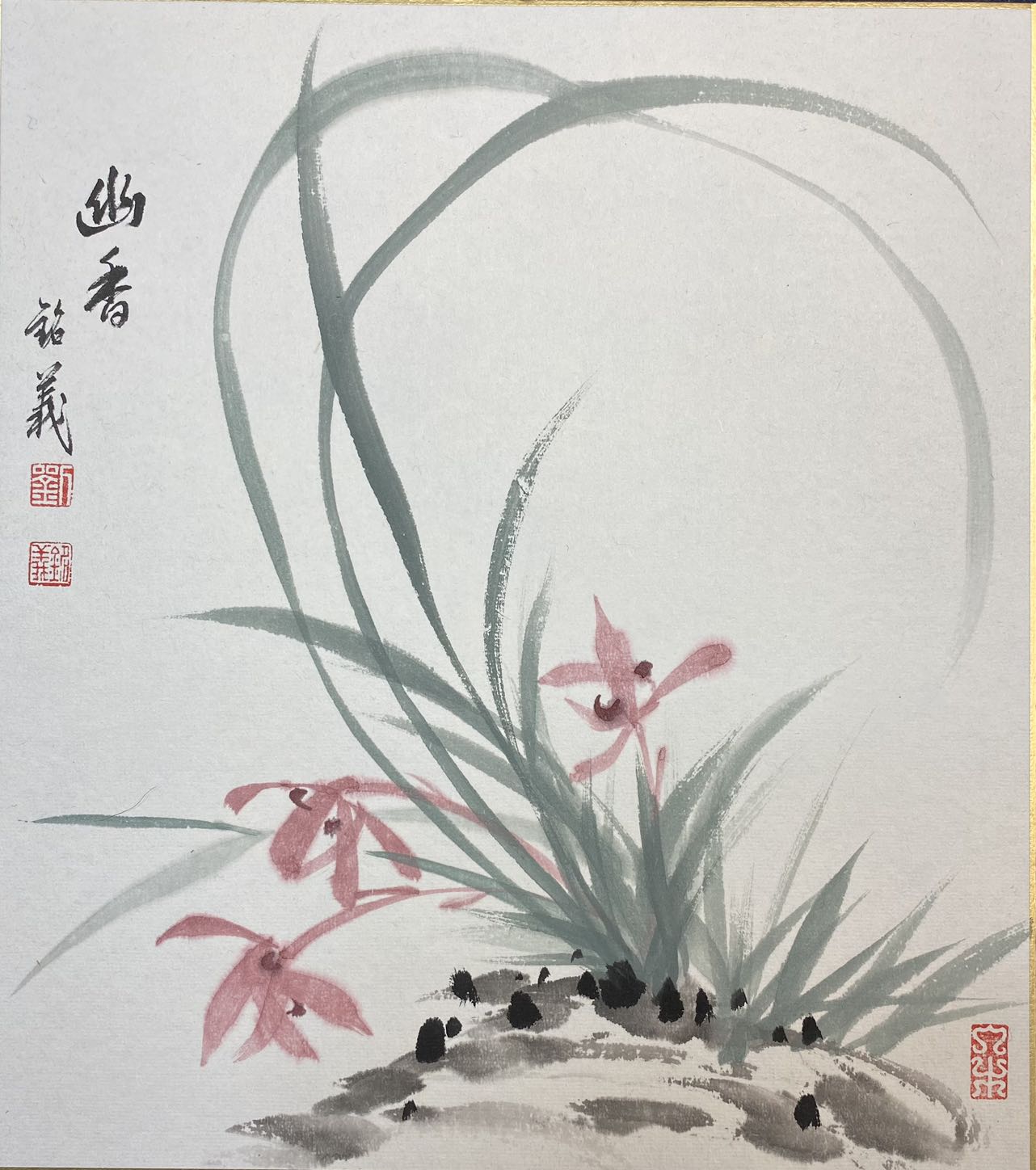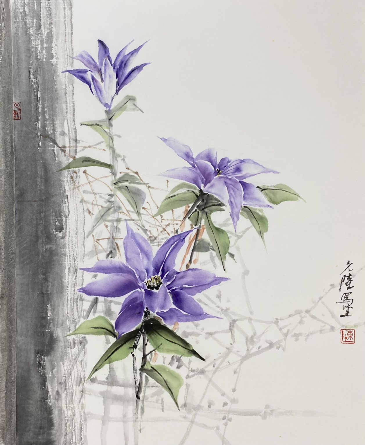 我也交作业。本来是蓝色宣纸,一拍照变成黑色的了。