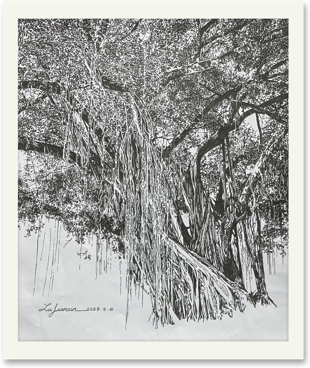 《荔湾湖古榕》签字笔画 作者 陆建新