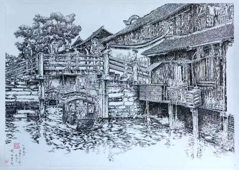江南风景题材钢笔(黑白)