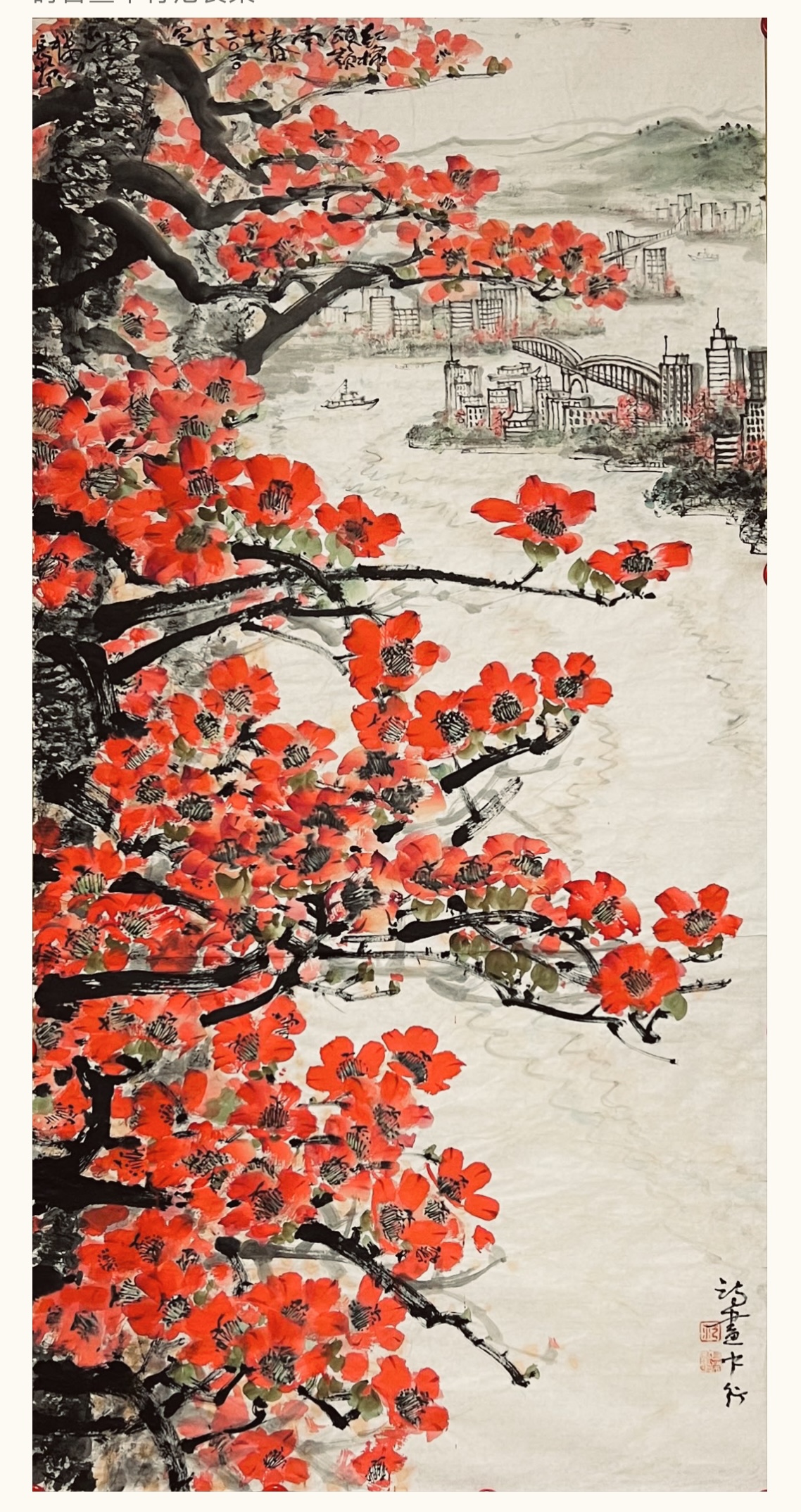 廣州好,人道木棉紅,落葉開花飛火鳯,参天擎日舞丹龍,三月正春風。