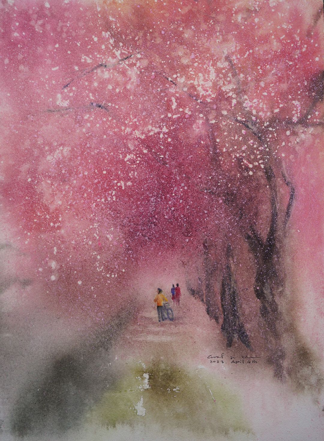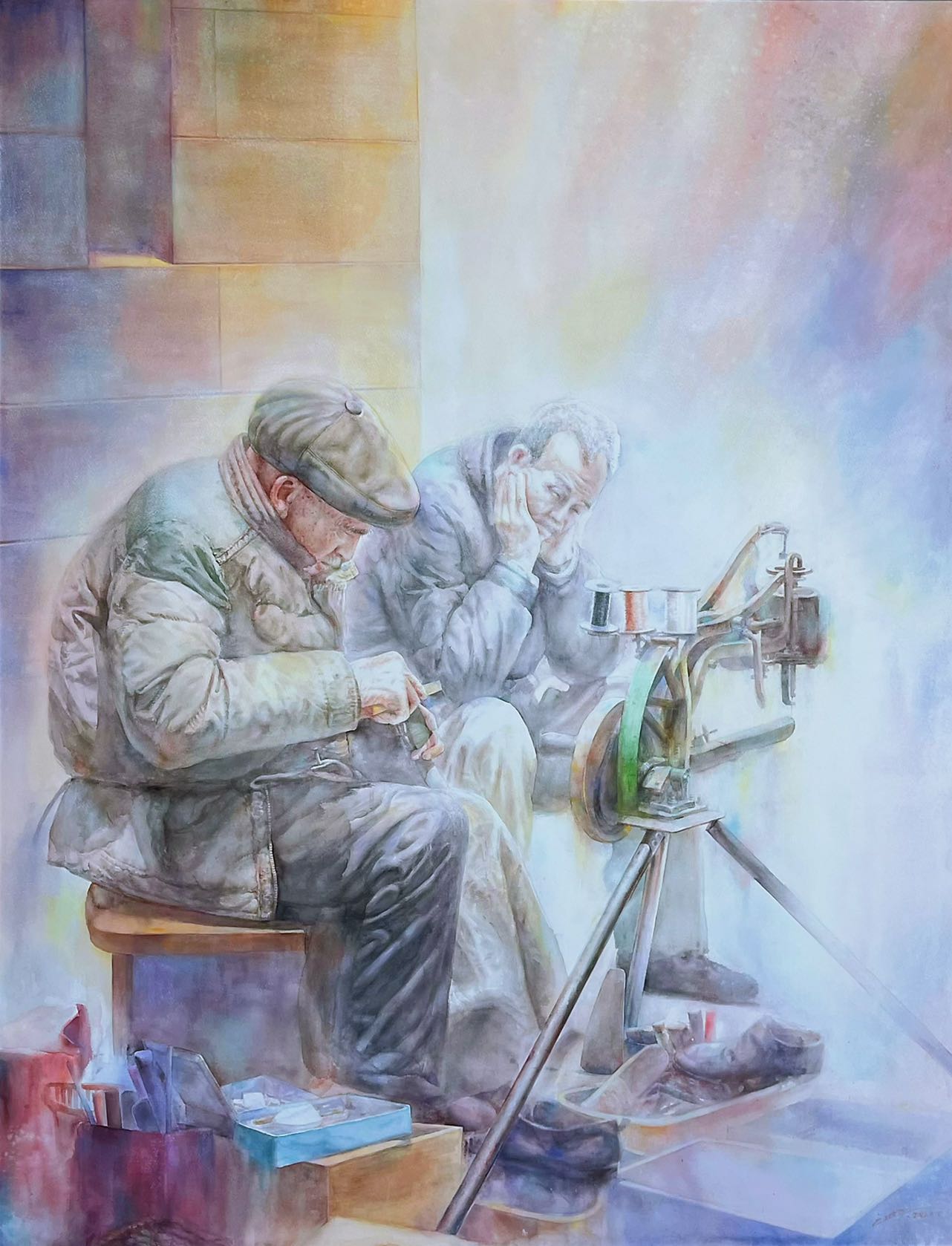 多云转阴,天空里忽然飘起了绵绵的细雨。在马路上行走的我,瞬间感觉到了几分寒意。然而在埼玉近代美术馆的“扇面书画的世界”展览会现场,却是一片温馨,春意昂然。也许是周末的缘故,观众与平日相比更显得络绎不绝。人们饶有兴趣兴趣的参加了扇面书法的实演,又三三两两地浏览着、欣赏着展出的扇面名作。没有想到的是,突然间有一位不速之客来到了会场。问他从哪里来?坐在轮椅上的他回答:熊谷,换乘了三趟车,费时一个半小时。原来他是听朋友说有一个不错的展览会,然后慕名而来。只见他仰起头发已经灰白的头颅,细心的观赏着每一幅作品。此景此情,令人感动不已。此次展会的企划担当,解说员杉山怡萍女士见状,走上前去为他做起了详尽的讲解。一个身体不自由的人,却对文化、对艺术如此的执着,我们禁不住扪心自问,情何以堪哪......