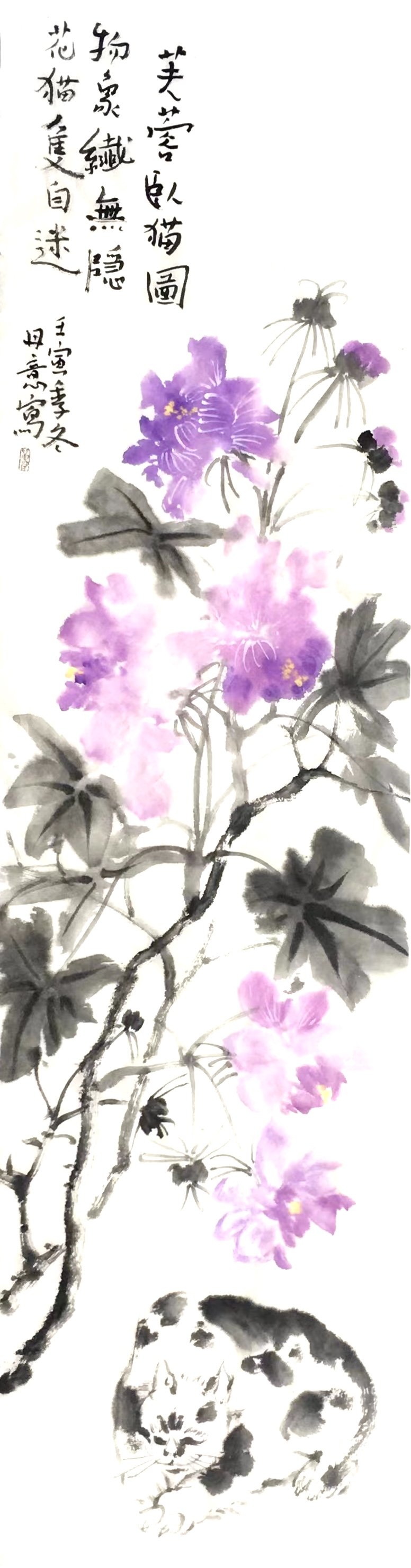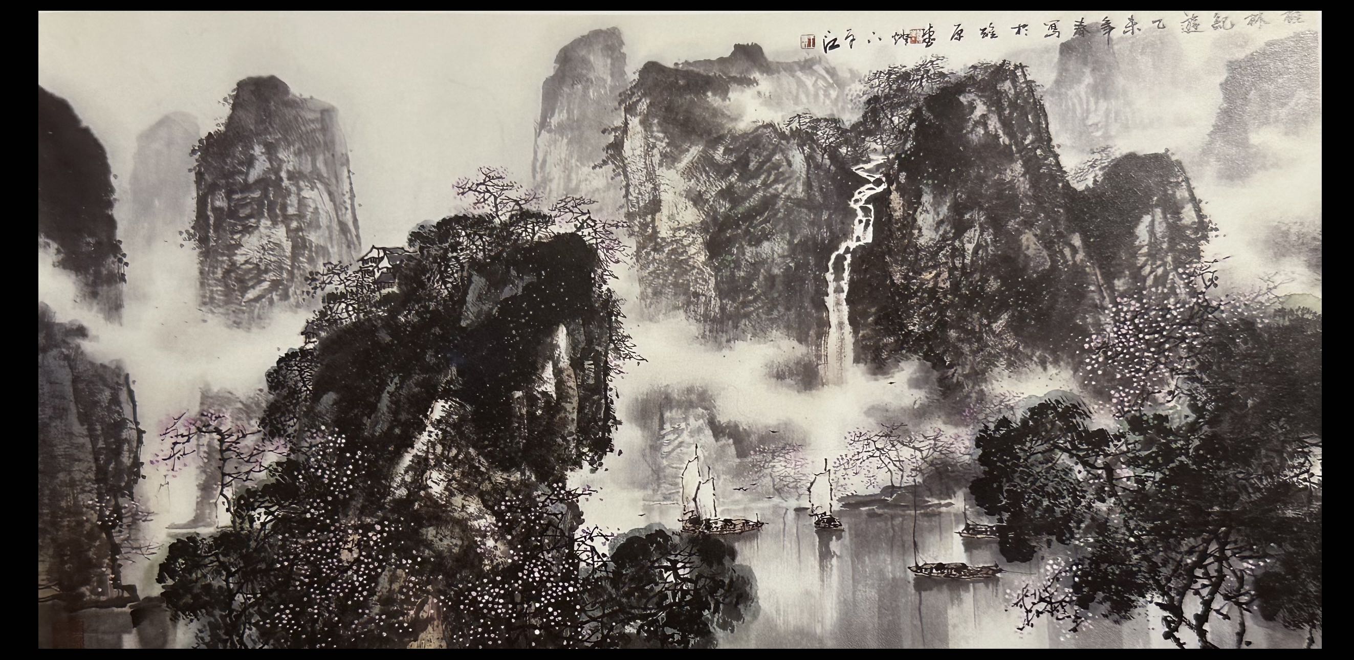 上:《桂林寄遊》(136 X68)水墨·顏彩·宣紙