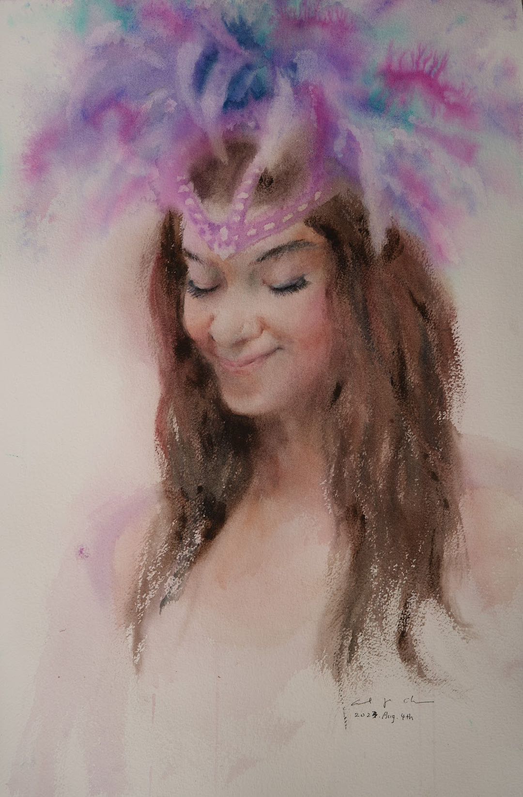 “仲夏夜里的流星”,是因为感叹清代官僚画家王同愈先生的一幅山水画而作。在这幅不足一平方尺的作品里。作者沿用了中国最传统的笔墨形式,挺拔有力,上溯宋元,在方寸之间,可见天地之宽。于是,我想到了炎热的仲夏,想到了夜空里飞舞的流星。作品完成后邀请惠萍女士诵读,她愉快地答应了。为了纠正一个字的完美发音,她执意重新录音。但不幸的是这个时间她被新冠击倒了。在语音的字里行间,我能感受到她与病魔的顽强搏斗,更能够感受到生命的弥足珍贵,以及她对于生命的呐喊。她说:“仲夏夜里的流星",不仅是浪漫,还有生活的哲理。真的是这样吗?....