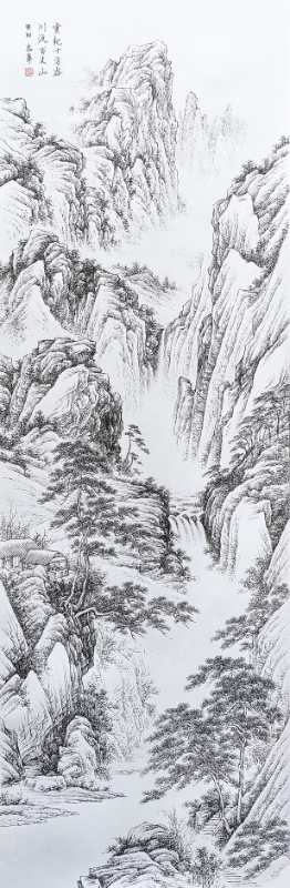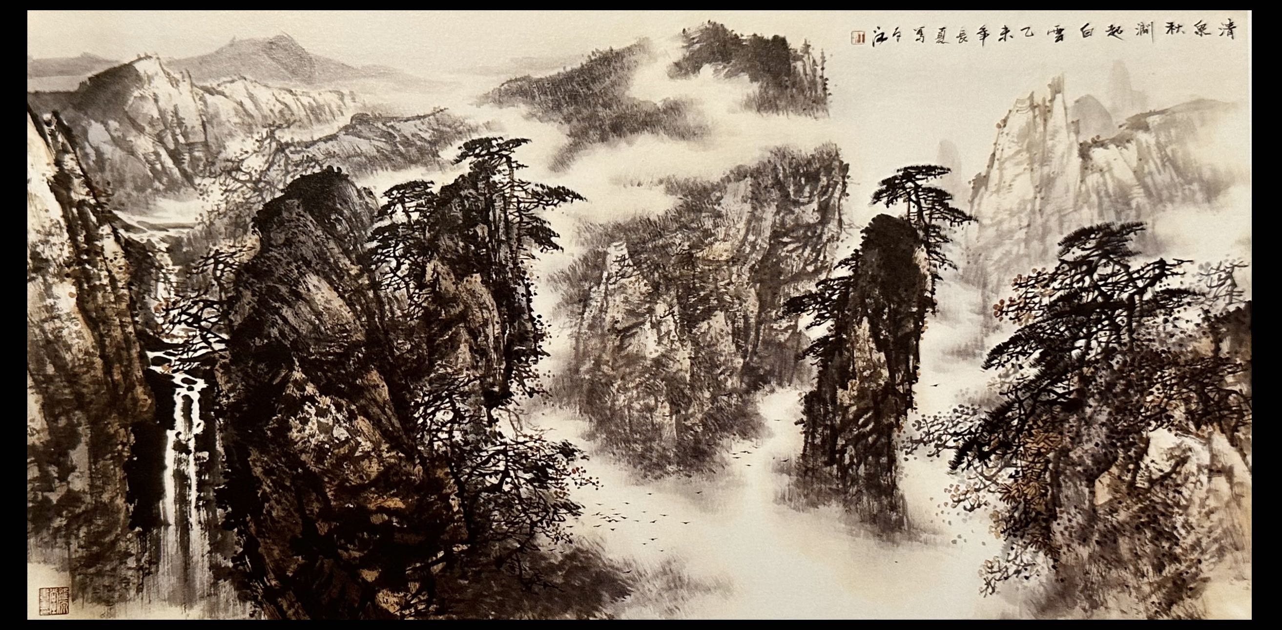 下:《清泉秋澗起白雲》(136 X68)水墨·顏彩·宣紙·王子江