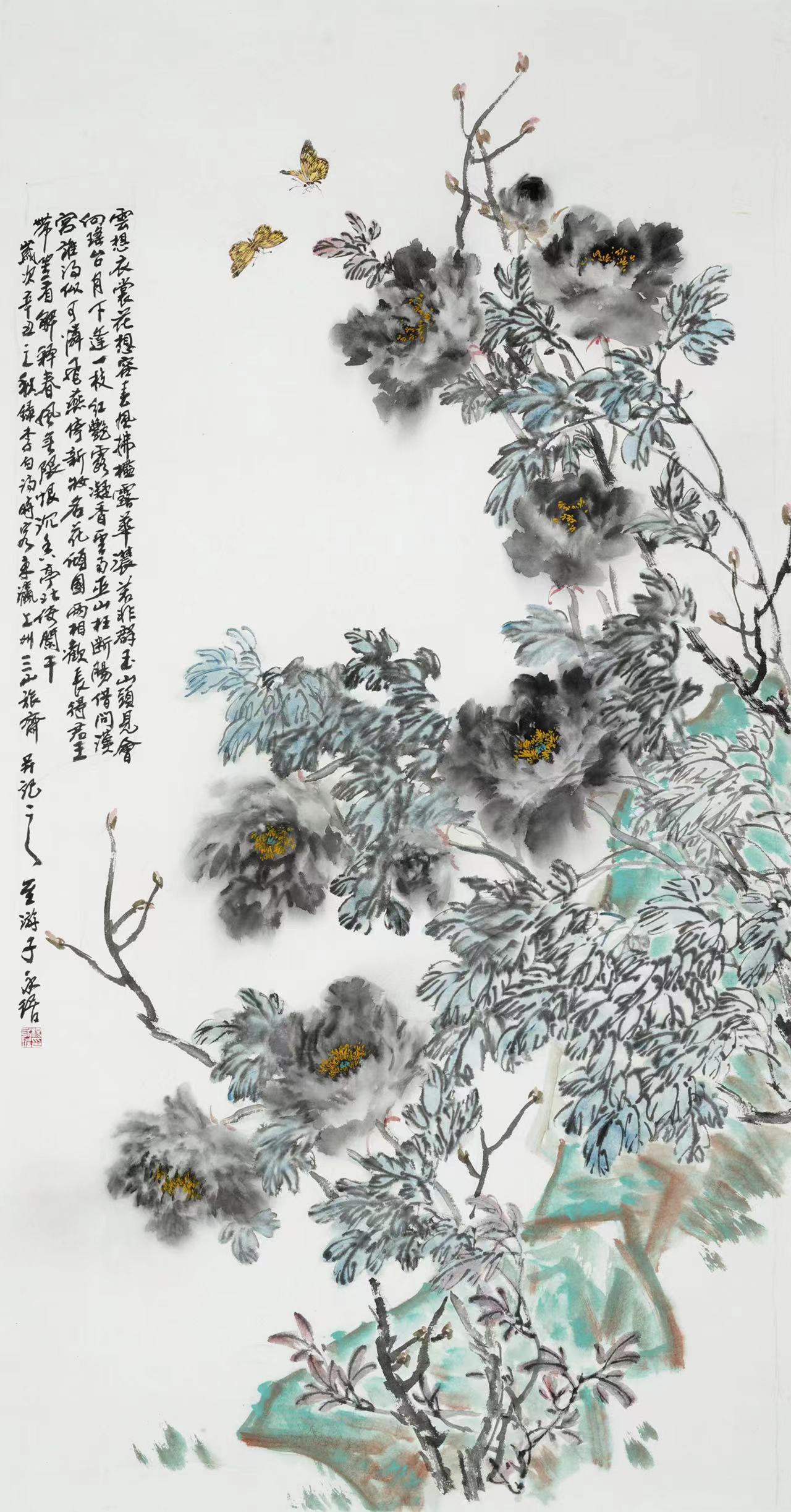 杨永琚《堪惜牡丹奇》136x68cm