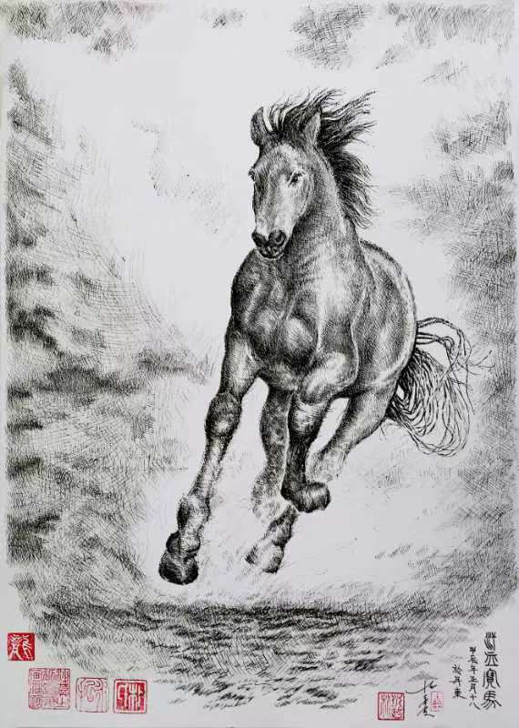 朴永哲钢笔画《汗血宝马》