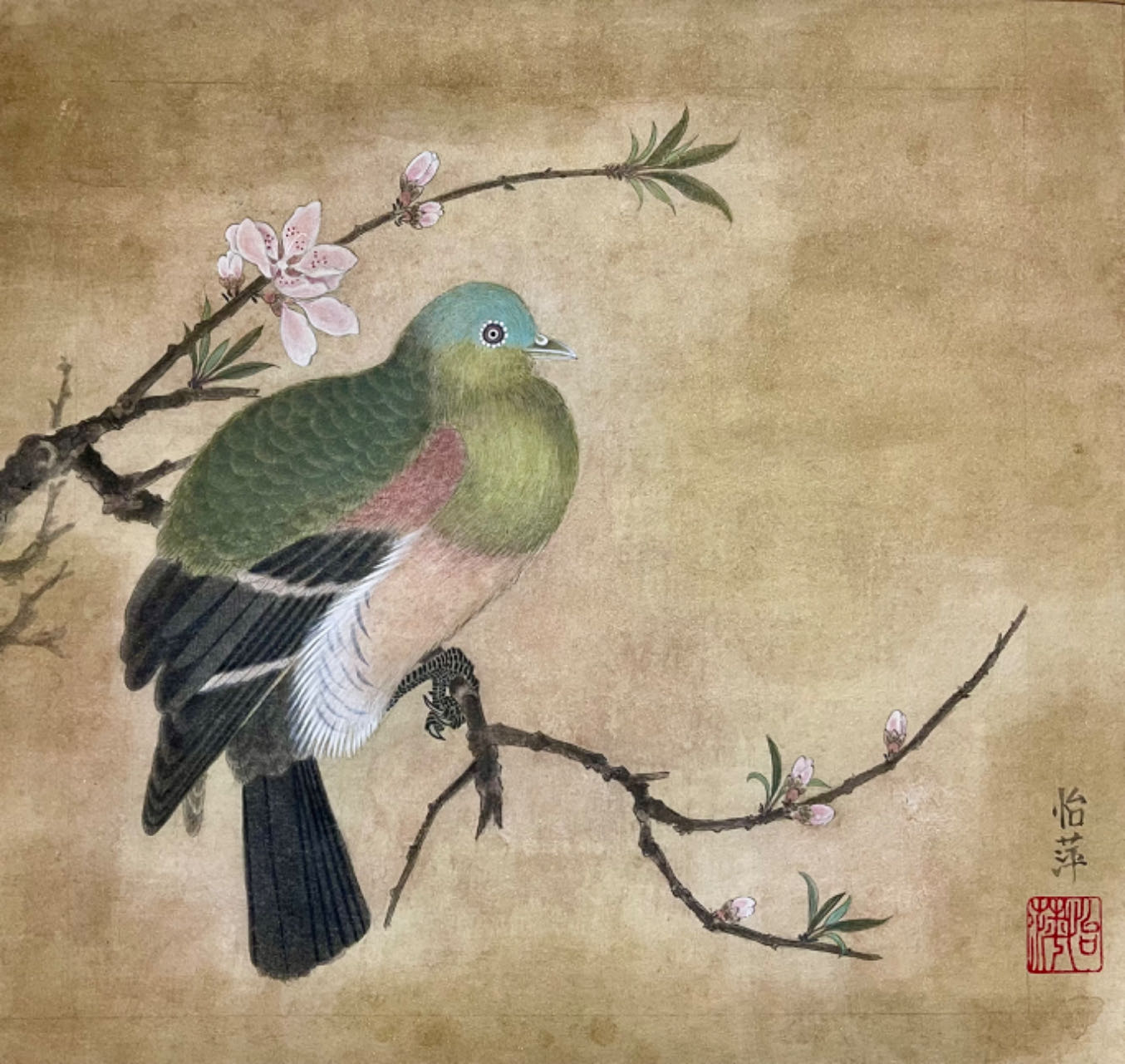 【桃鸠图】怡萍画(工笔)