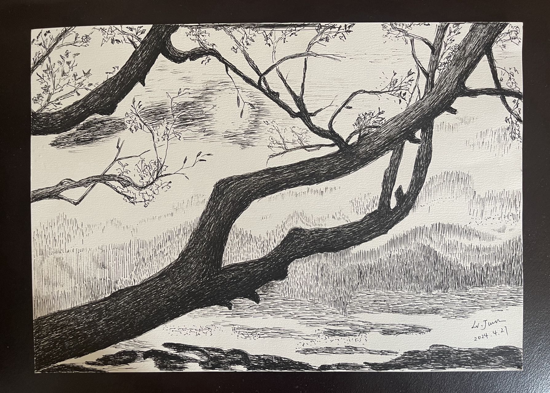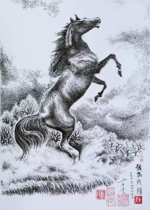 櫻吹雪  散り落つ旋舞 鹿角も花 (張大順撫甲拙句)