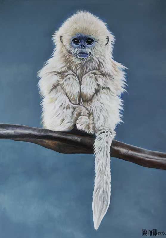 都天贵 金丝猴油画《小宝》