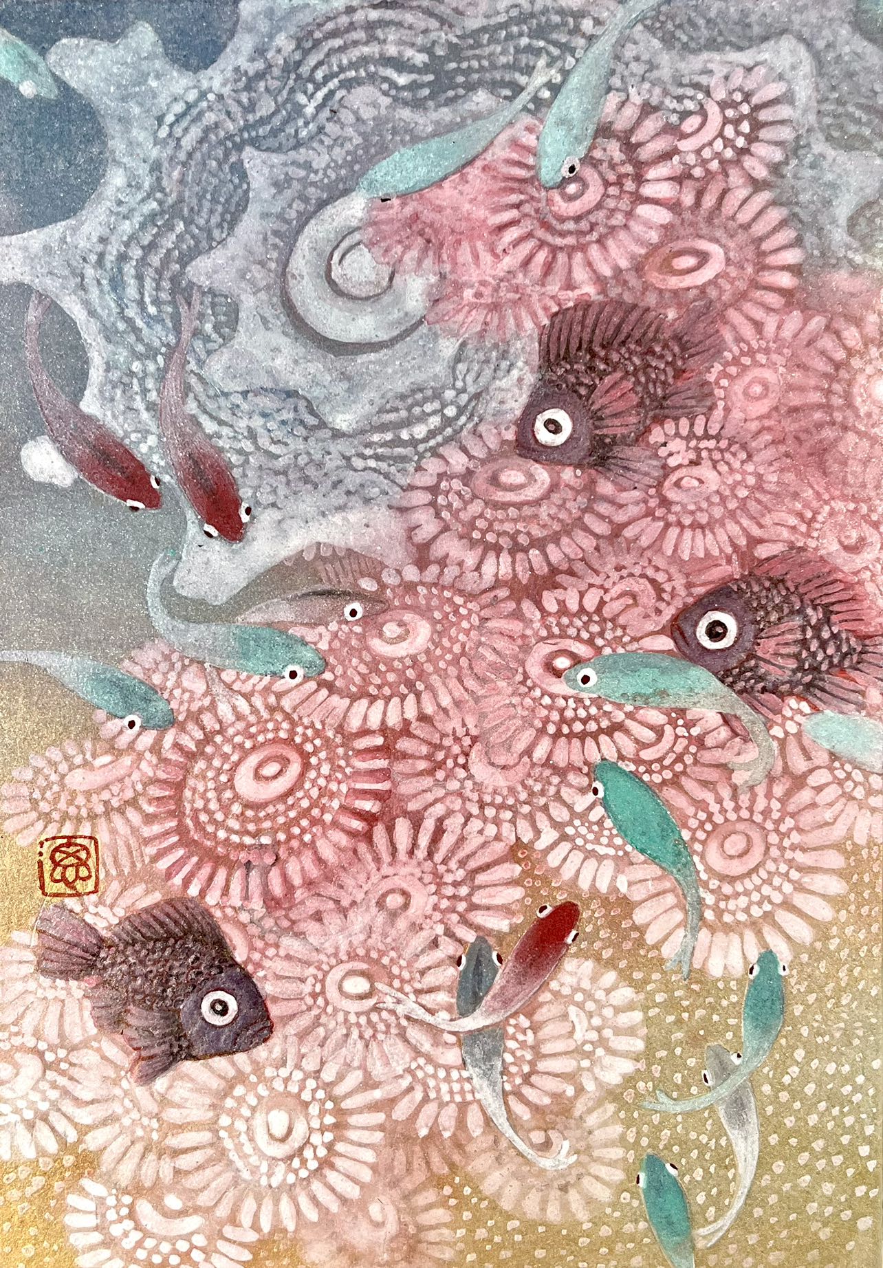 日本画《海底世界》  卢思